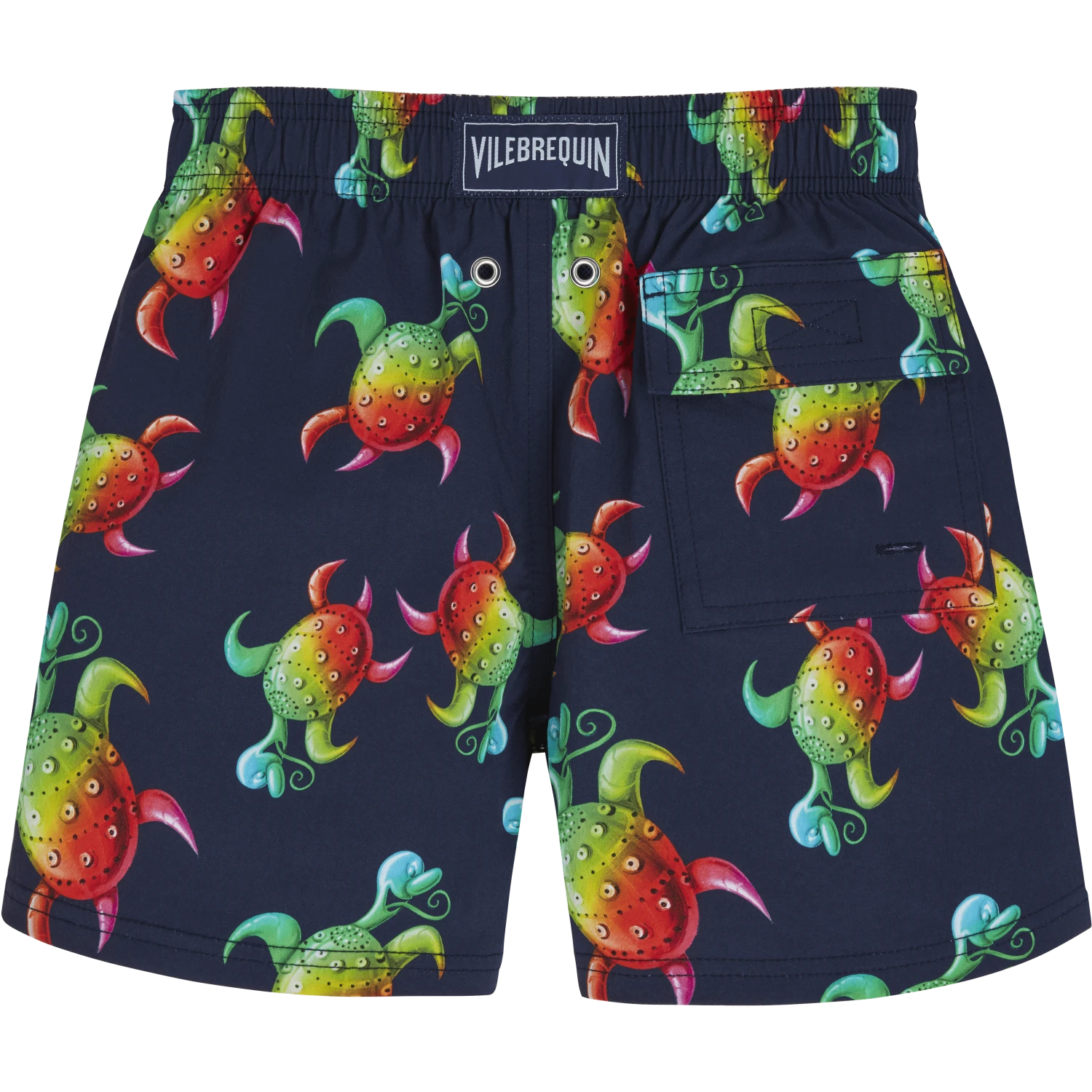 Curated by JRP|Editions for Vilebrequin, LA-born artist Kenny Scharf came up on the New York art scene in the 1980s. Steeped in imagery from 1950s American pop culture, his scenes and characters depict a cartoon-like utopia imbued with vibrant, optimistic colors. The Turtues Multicolor Rainbow print comes from Scharf’s Pop Surrealist universe overlapping with Vilebrequin’s signature joyful and playful DNA. Kenny Scharf’s designs are licensed by Artestar, New York.