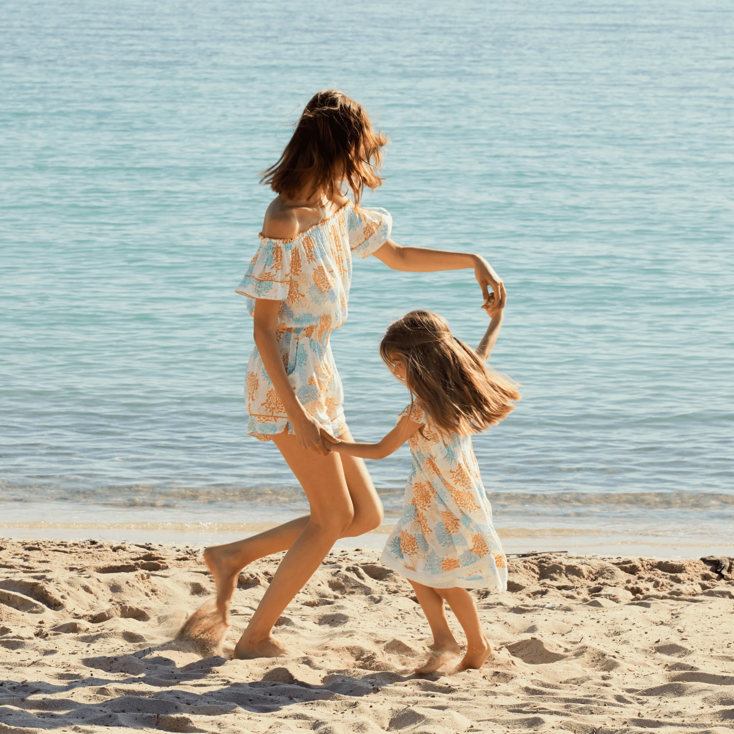 To be as beautiful as Mum, the little version of the women dress Sasha will dress up every little girl. This small trapeze dress is easy-to-wear and pleasant. Each print and garment is created by hand and manufactured in Poupette St Barth’s couture atelier and design studio in Bali, Indonesia, using traditional techniques such as hand screen printing, local dyeing and embroidery