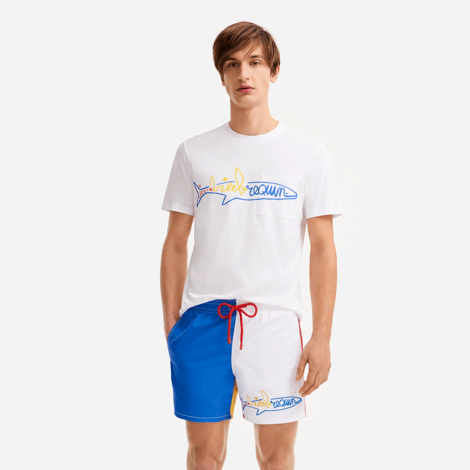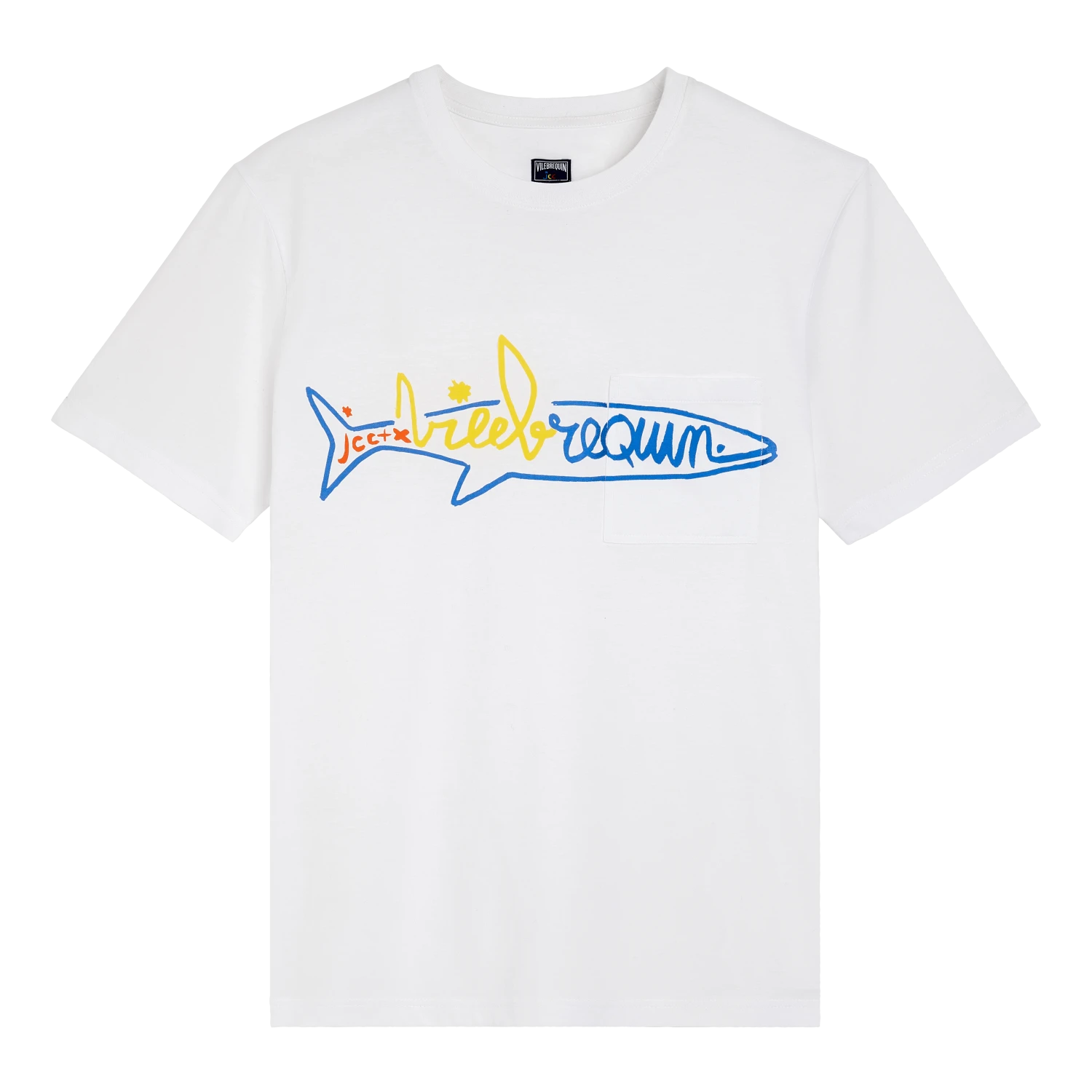 This round neck T shirt features the collection symbol, the placed multicolor shark. Made in cotton jersey for coolness, it presents a chest pocket and a the Vilebrequin X JCC+ wowen label at the back.