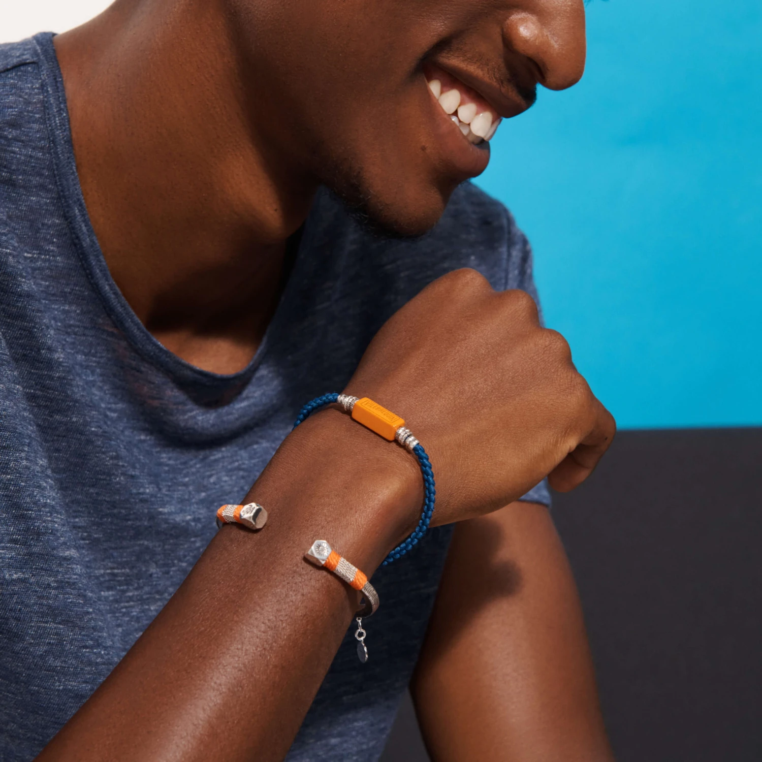 So Vilebrequin and so Gas Bijoux… This cord bracelet is definitely the most symbolic creation of our collaboration. The logoed rectangles (found at the end of the swimsuit drawstrings and therefore waterproof), are enhanced by a sailor’s cord, vintage rings and an adjustable closing chain. For men and available in 3 colors (black, navy and turquoise)