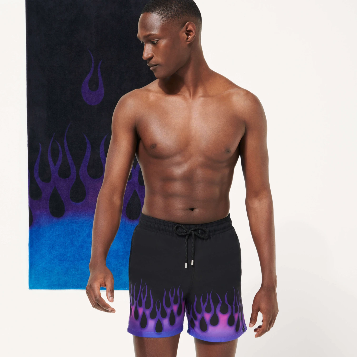 Curated by JRP|Editions for Vilebrequin, Swiss artist Sylvie Fleury has been exploring the crossovers between art, fashion, tuning, and the New Age aesthetic. Initially used for wall paintings, the artist’s “Hot Rod” visual is revisited here for Vilebrequin as men’s and women’s swimwear as well as accessories. And what could be more appropriate ?