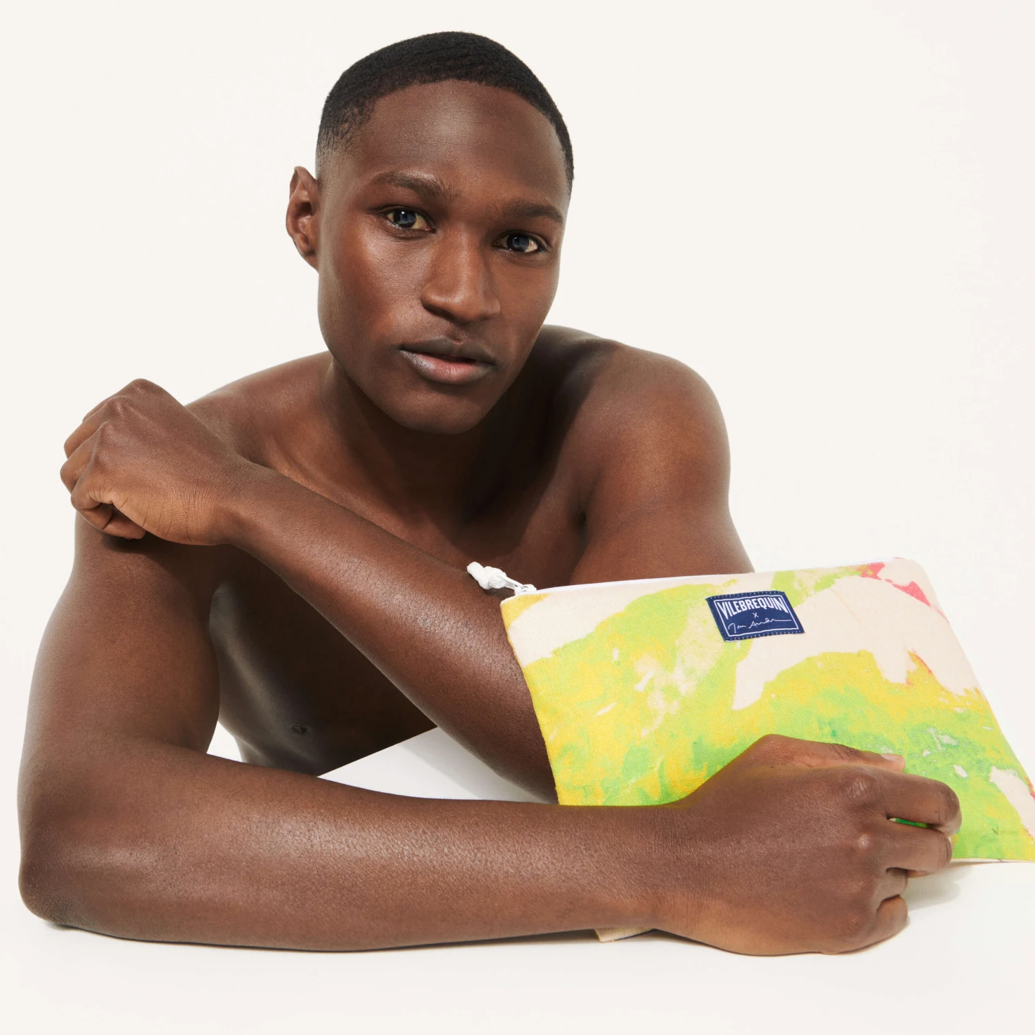 Curated by JRP|Editions for Vilebrequin, John M Armleder is a Swiss performance artist, painter, and sculptor who has spent four decades developing his own creative vocabulary by mixing mediums, techniques, and movements—“a supermarket of forms,” as he calls it. The Gra is inspired by his renowned “Pour Paintings” series, canvases coated in various materials that appear to have been assembled by chance while retaining a striking formal appeal verging on abstraction.