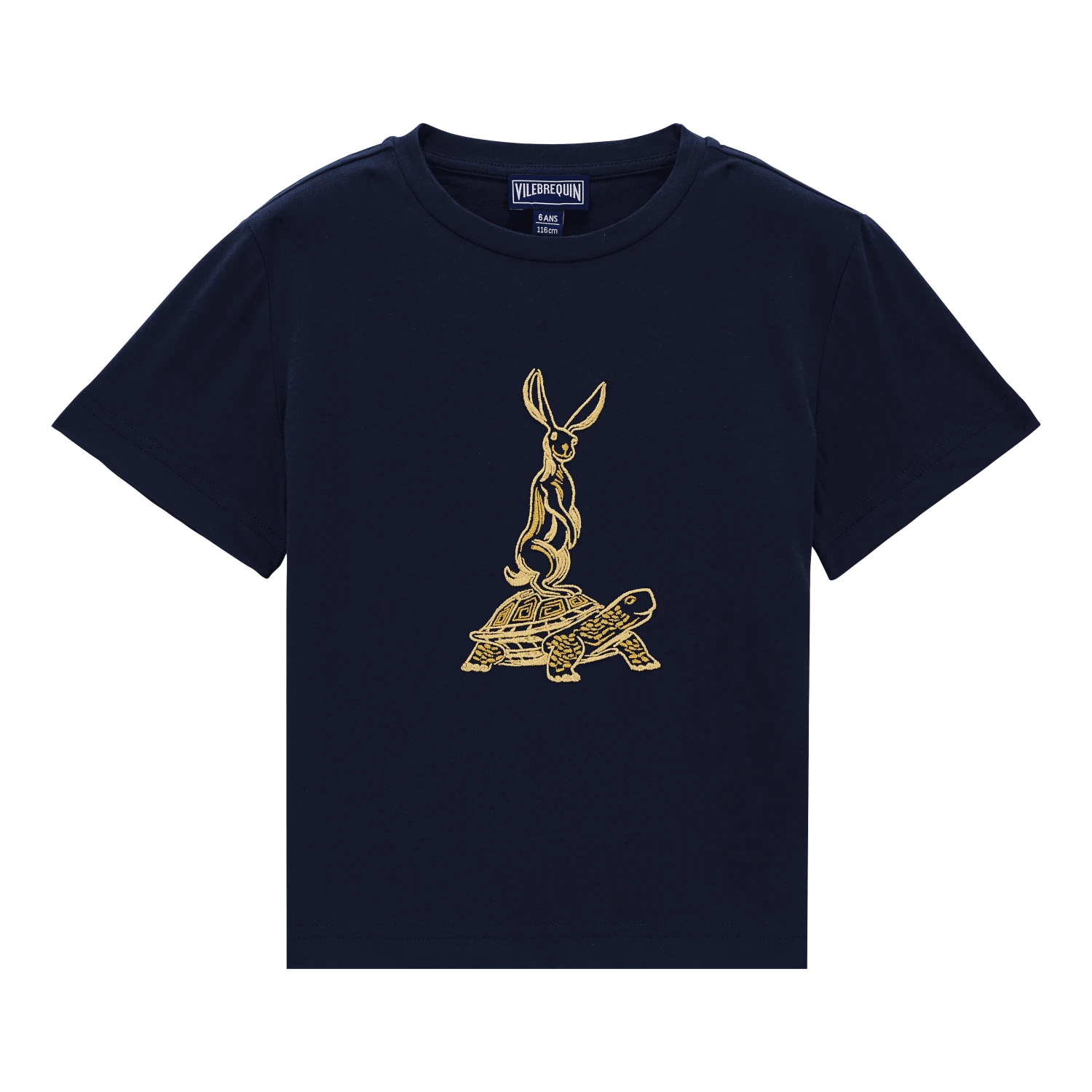 The hare and the tortoise celebrate the Year of the Rabbit as a duo on the Taon The Year of the Rabbit boys’ cotton T-shirt. This round-neck top is sure to please stylish kids who want to celebrate the Lunar New Year. It has a Vilebrequin logo on the back.
