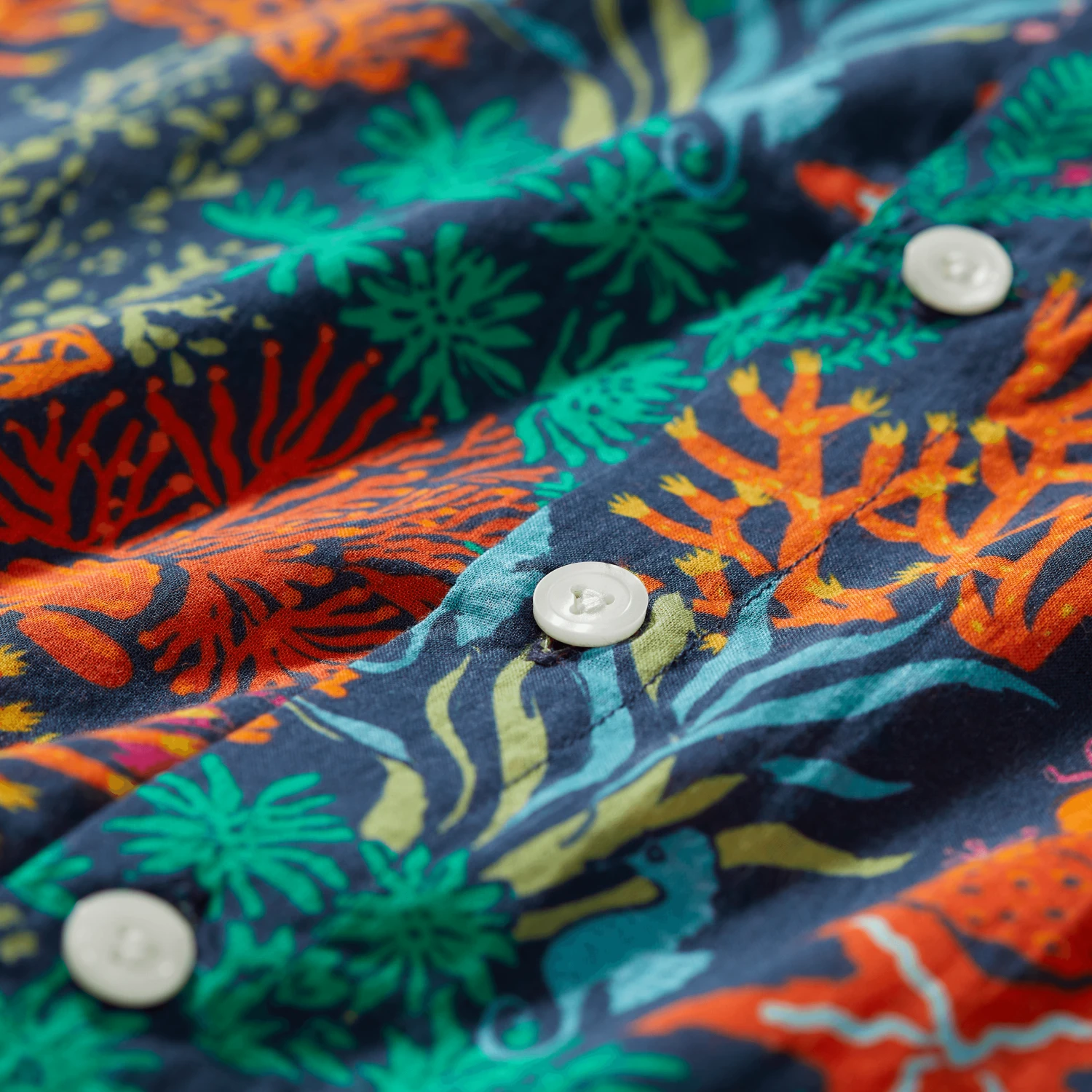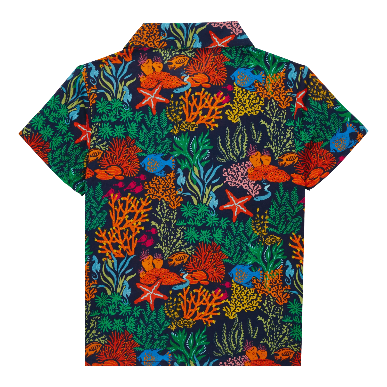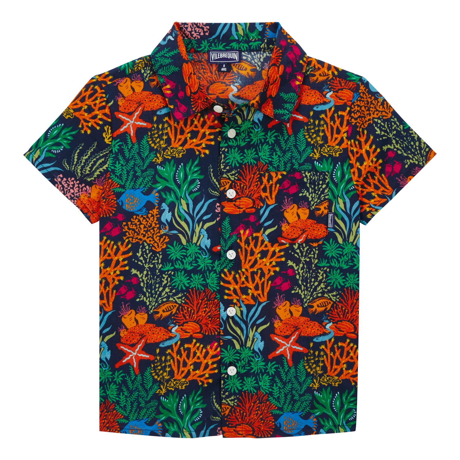 This boys’ shirt conjures up the dream of diving in broad daylight without needing a water tank. The seabed displays all its richness and colours in complete freedom.