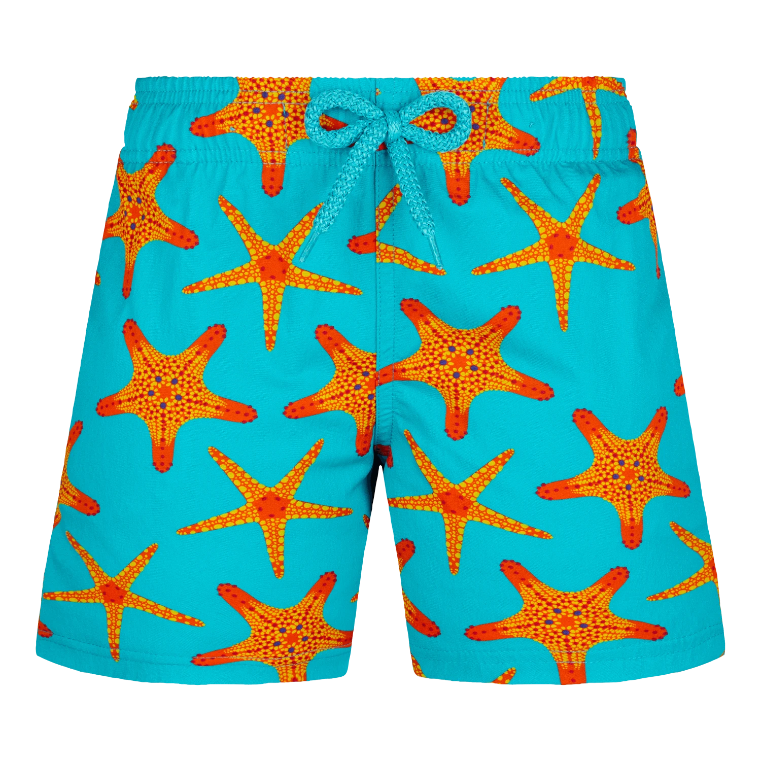 - Boys’ swimwear with elastic waist band and drawstring closure