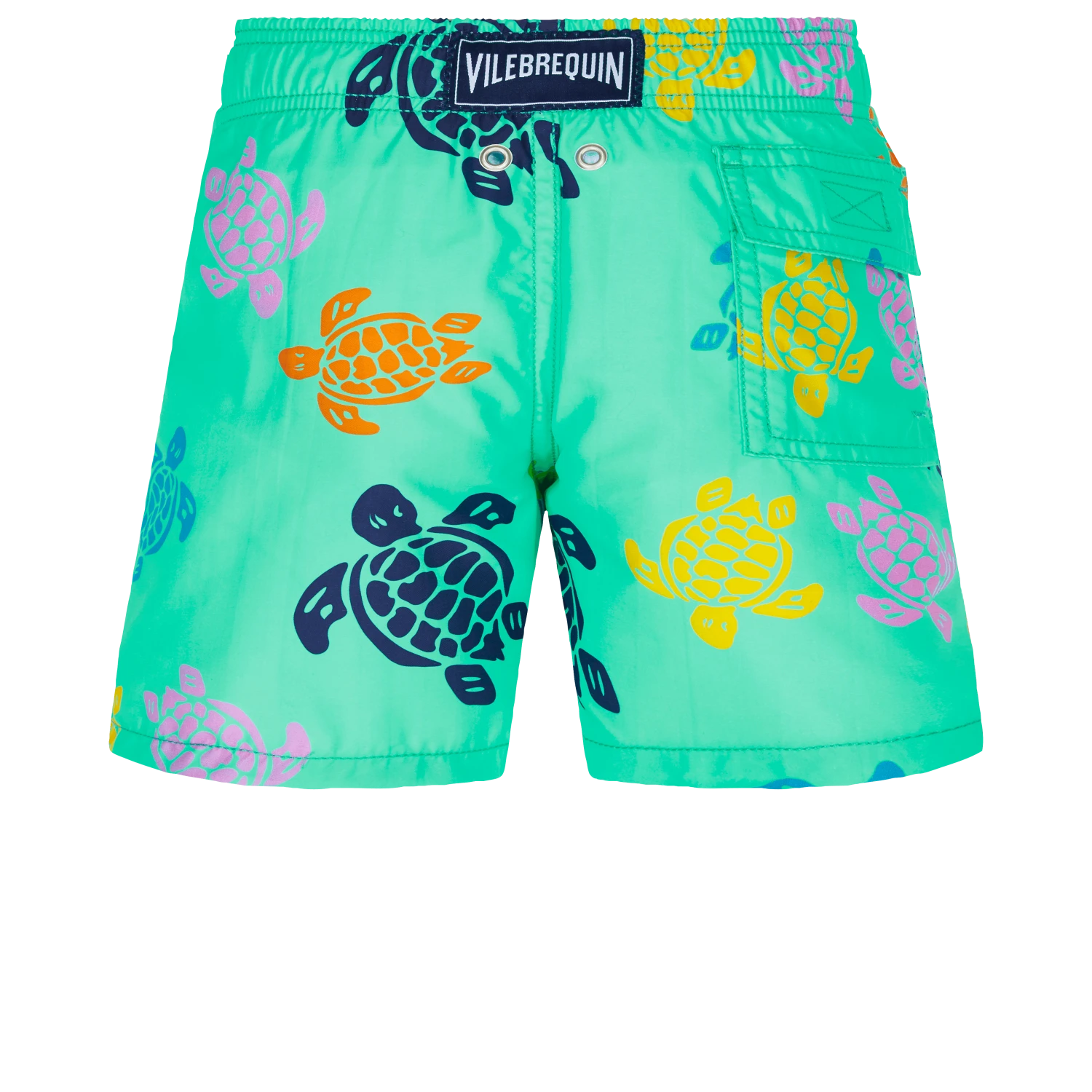 The classic Vilebrequin turtles are decked out in party colours on the Jim boys’ swimming trunks. With their vibrant colours and Ronde des Tortues Multicolore print, these shorts with their elasticated waist and three pockets are just as perfect for swimming as they are for playing on the beach.