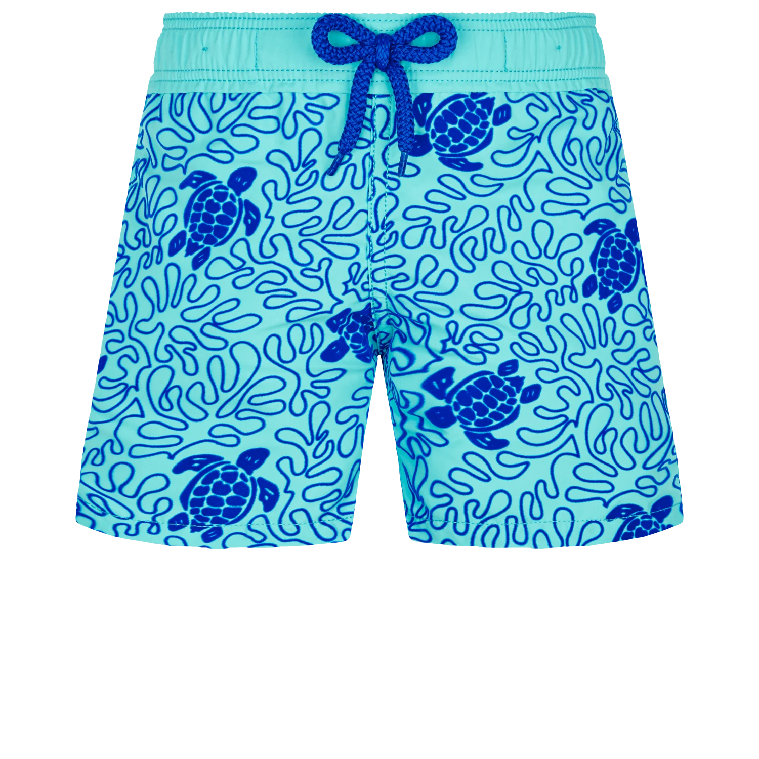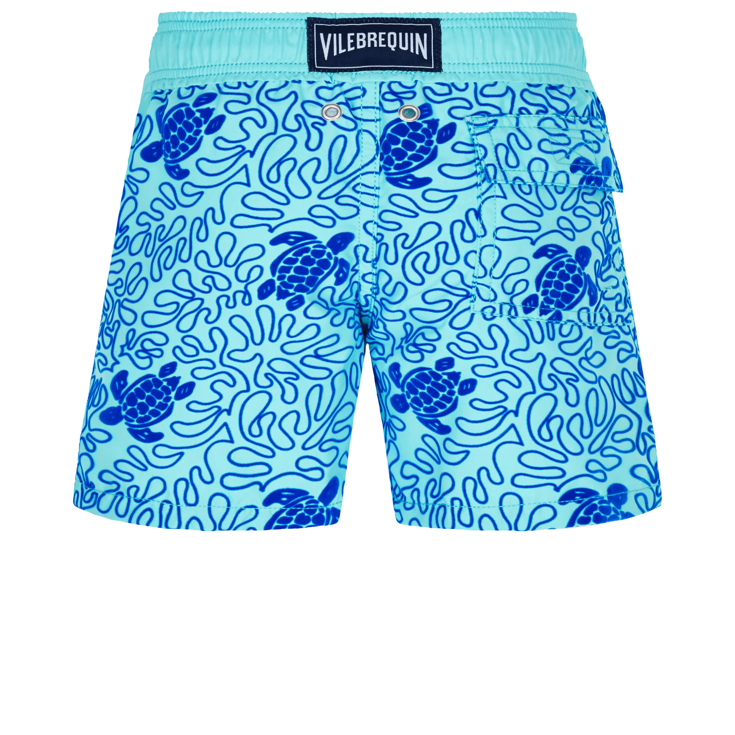 Let the children count the turtles slaloming between the corals on these boys’ Jim Turtles Splash swimsuit. Embellished with flocked patterns and a tone-on-tone drawstring, these perfectly cut swim shorts have two side pockets and one on the back.