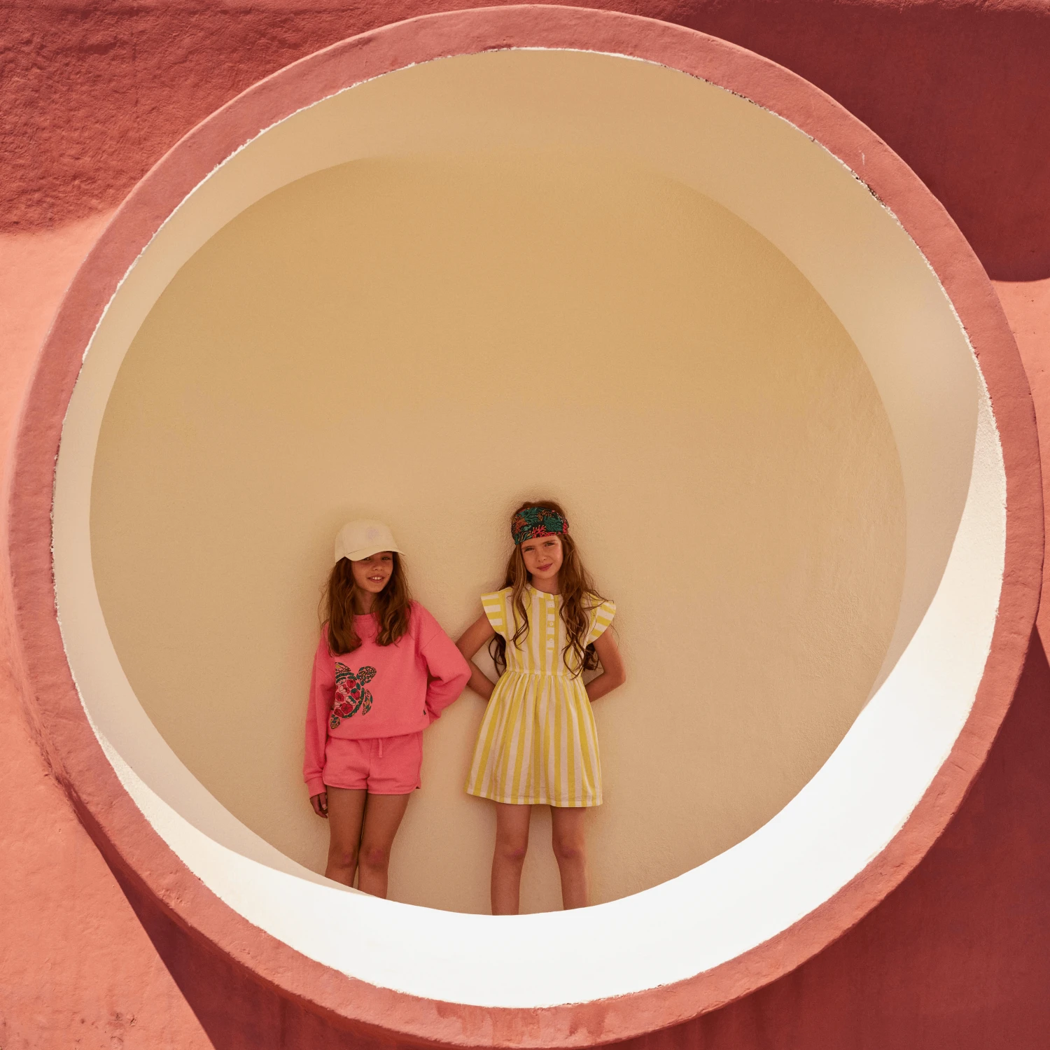 A double dose of countryside features on this girls’ round-neck sweater. Transport them to an enchanting world with a turtle wreathed in Provençal flowers.