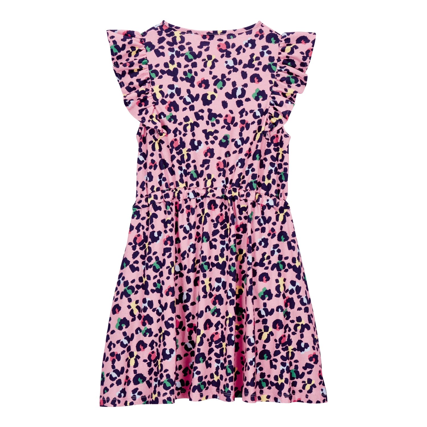 Sometimes you’ll see a leopard, sometimes you’ll see turtles. Everyone is free to choose what they want to see on this girls’ patterned dress, a perfect combo of turtles and leopards.