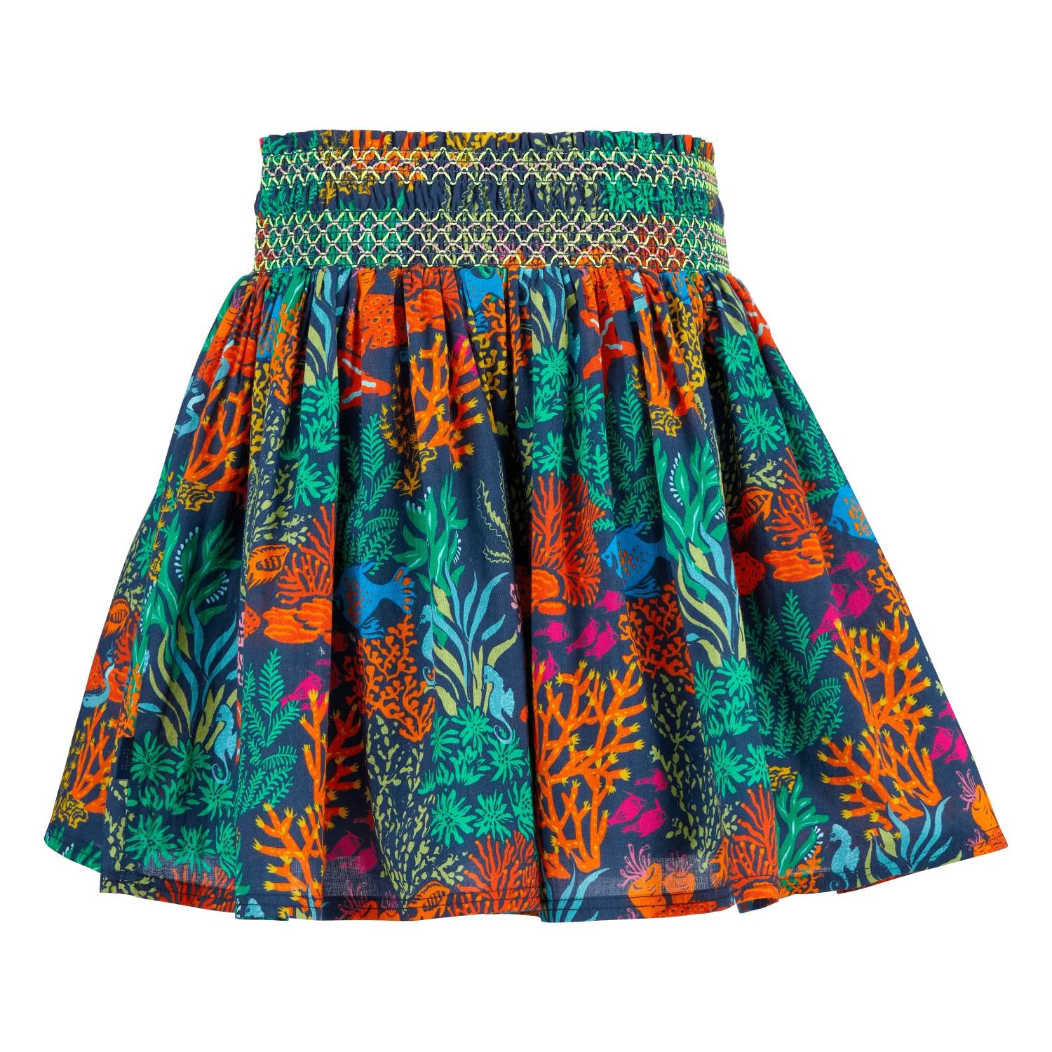Little ballerinas can take to the depths with this girls’ skirt. The entire seabed blossoms across this swirly skirt, with fish and starfish making friends among the corals.