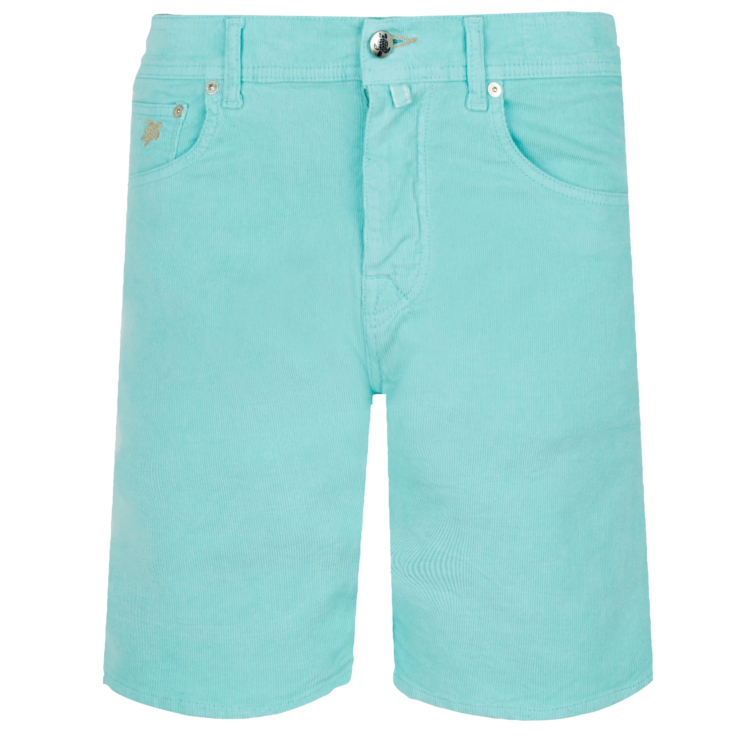Texture and colour are a big part of the season’s looks with these men’s 5-pocket dual pinstriped velour Bermuda shorts. This straight-fit classic can be worn with a shirt in the evening or a T-shirt during the day. An embroidered turtle adorns the small pocket.