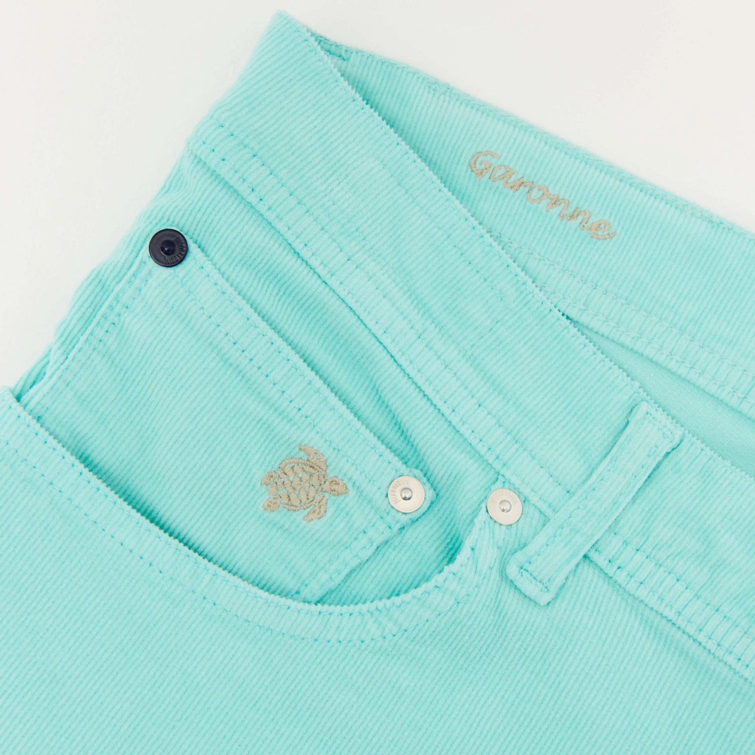 - The embroidery on the back pockets is unique to Vilebrequin and reminds the shape of the curved logo