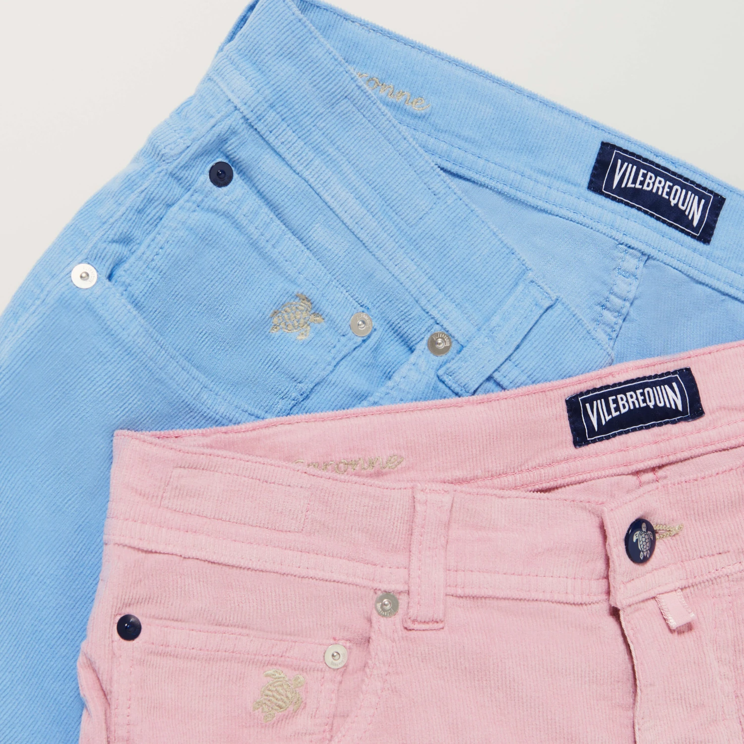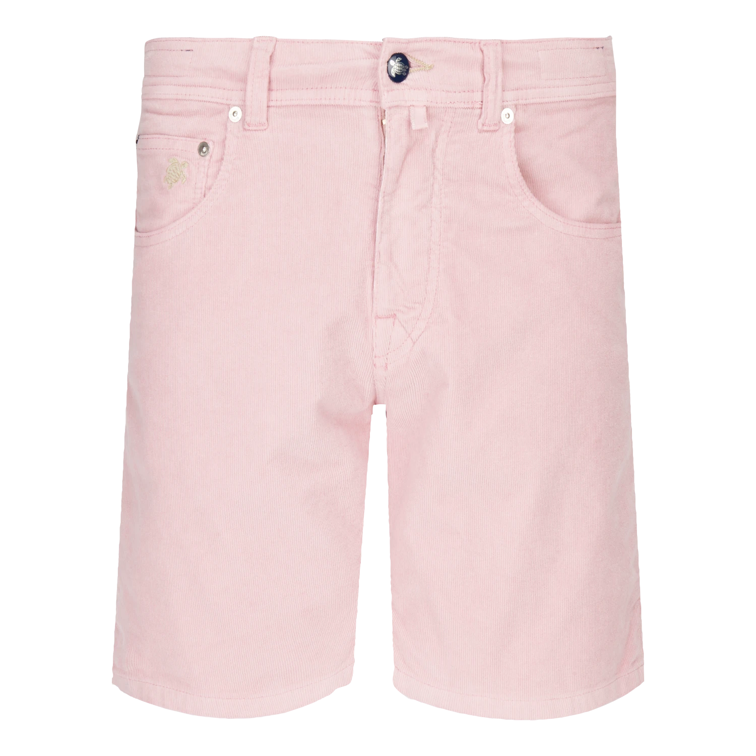 Texture and colour are a big part of the season’s looks with these men’s 5-pocket dual pinstriped velour Bermuda shorts. This straight-fit classic can be worn with a shirt in the evening or a T-shirt during the day. An embroidered turtle adorns the small pocket.