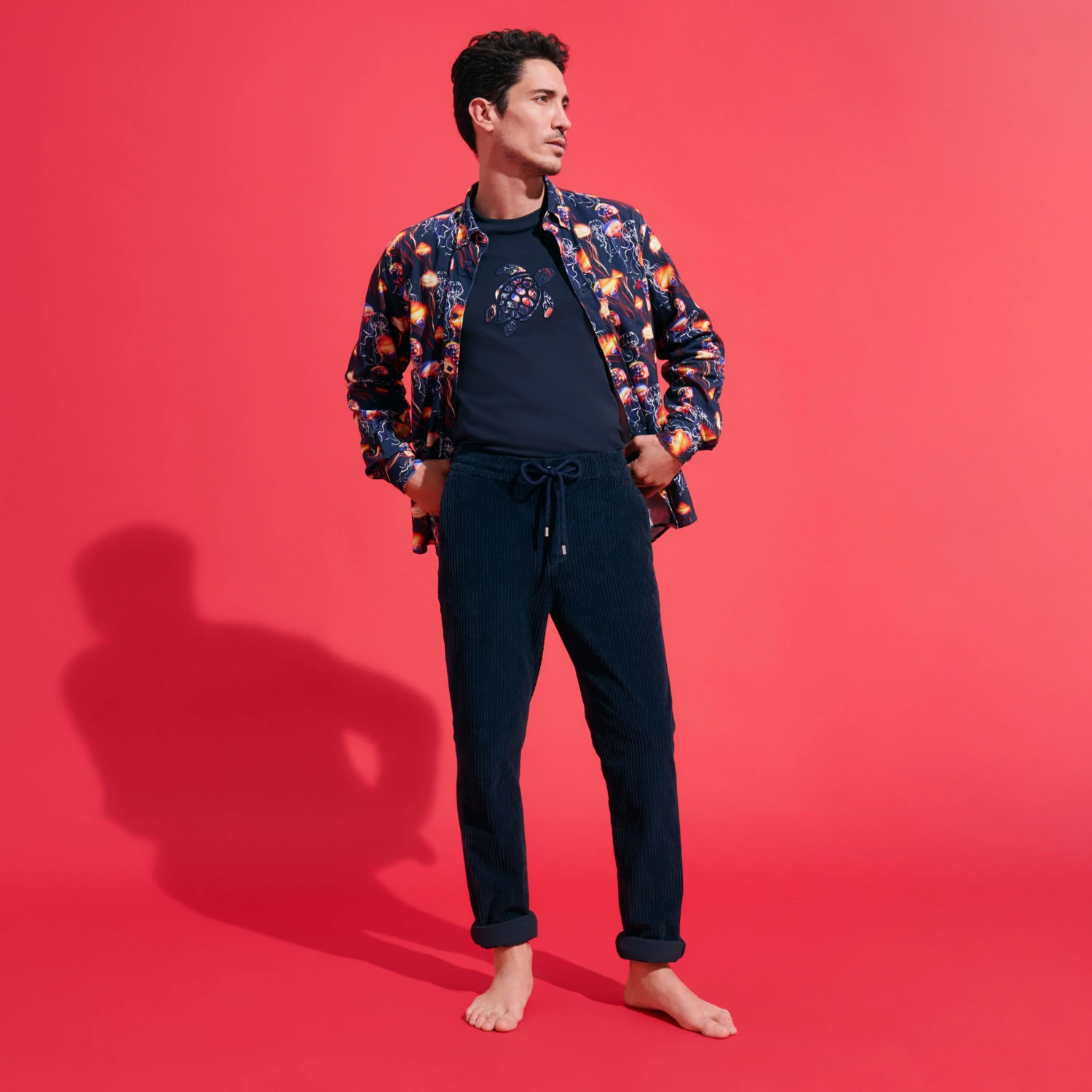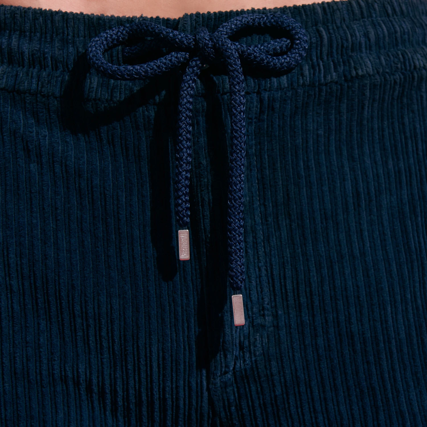 Reinvent sportswear with these fashion-forward Clemence plain velvet trousers. Made from elegant vintage-inspired corduroy, they have an elasticated waistband and a drawstring with tips, the same that you see on jogging bottoms. They fasten with a button.