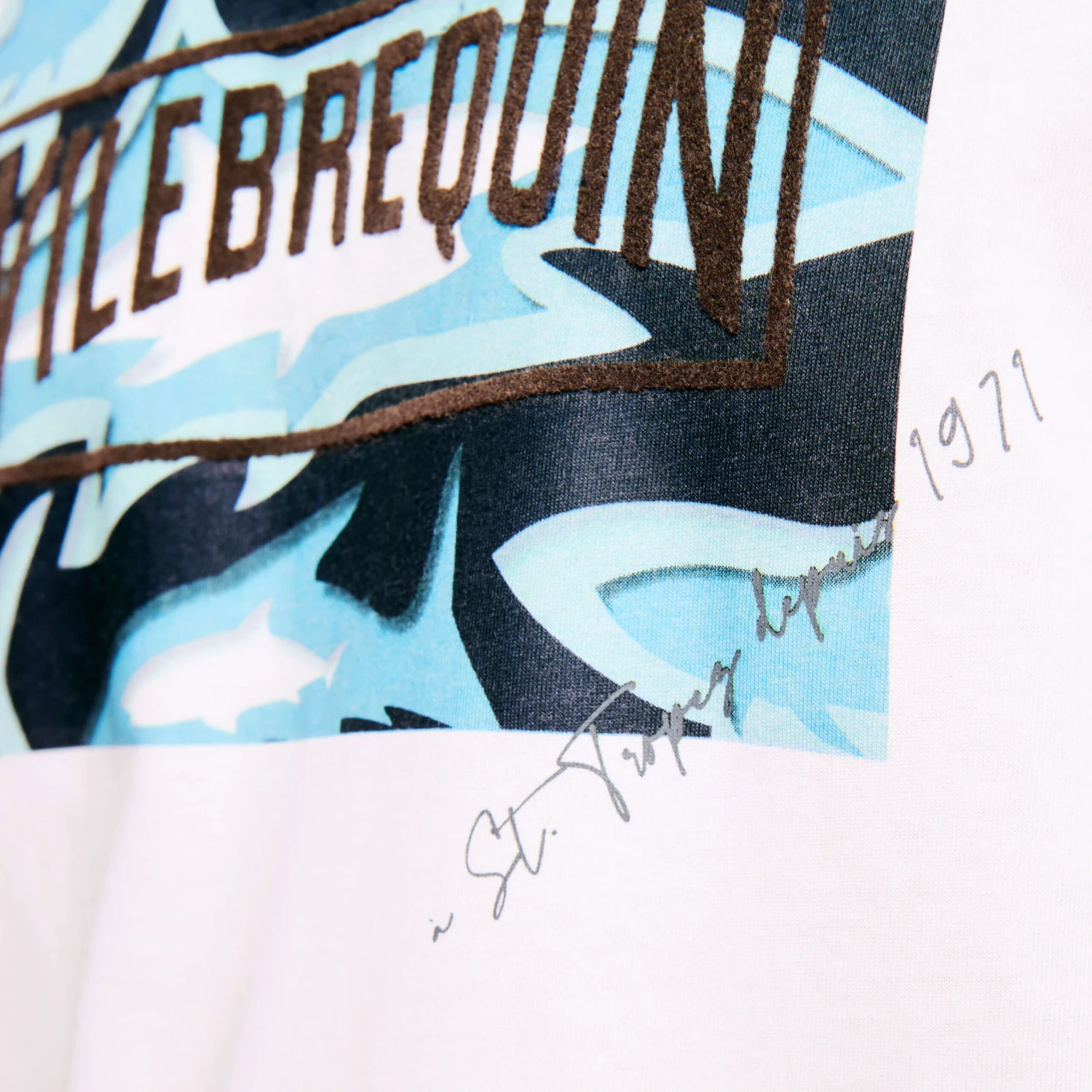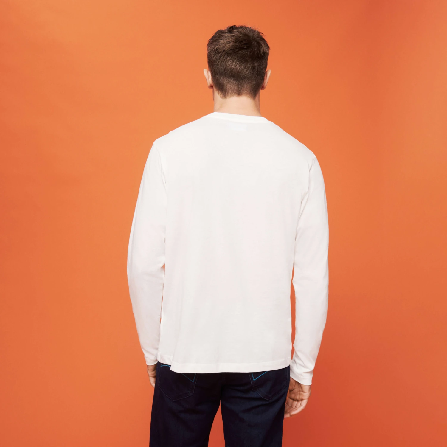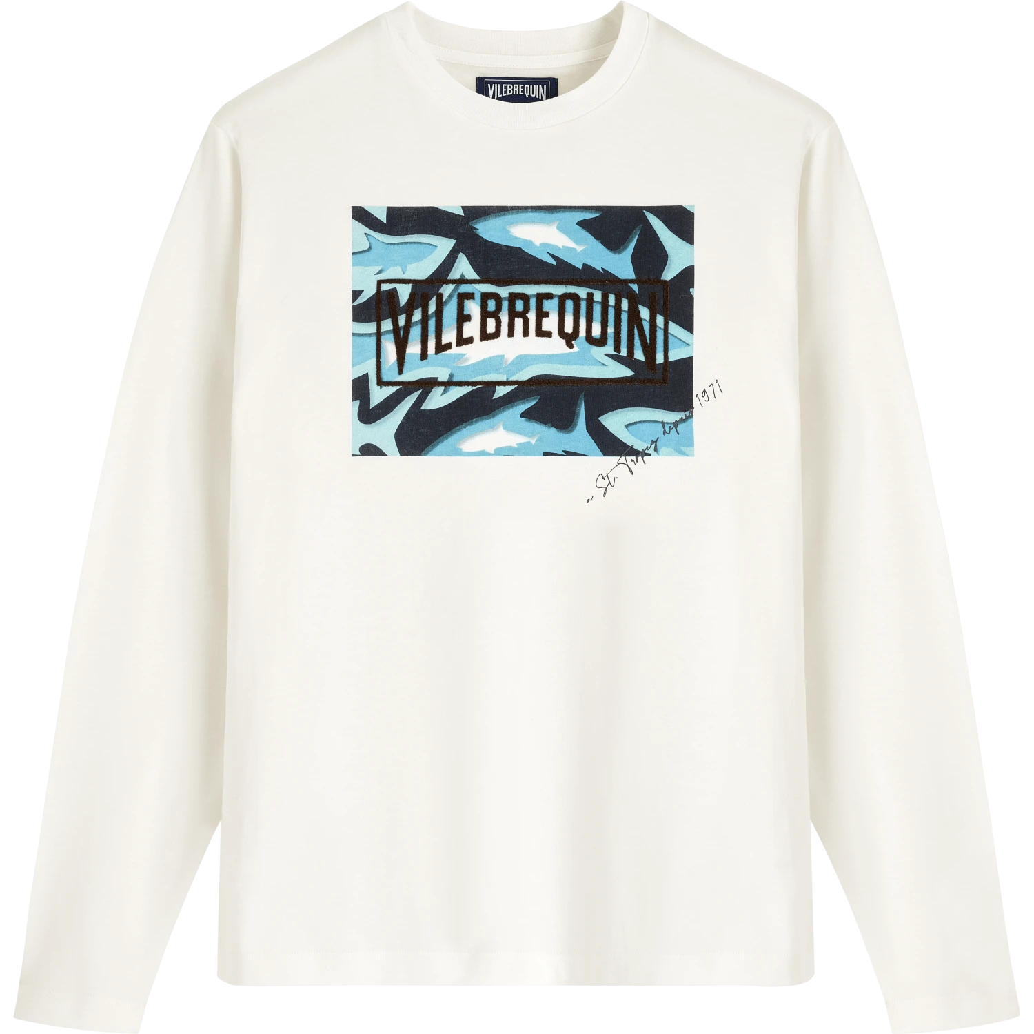 Go 3D with the sharks hidden under the Vilebrequin logo. This is the season’s motif, appearing on the Ales men’s patterned cotton T-shirt. It has a round neck and long sleeves to complete your summer and winter outfits.