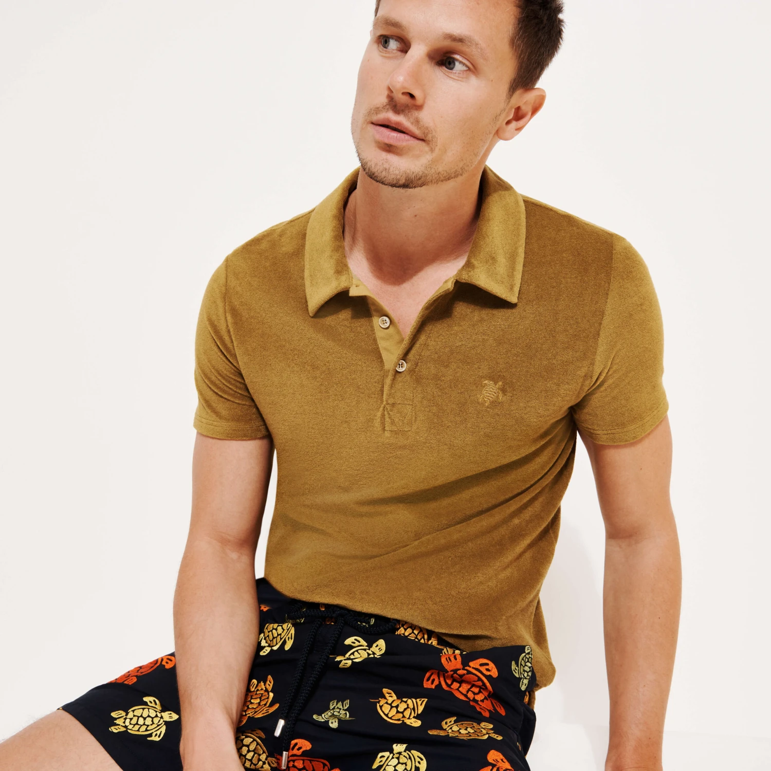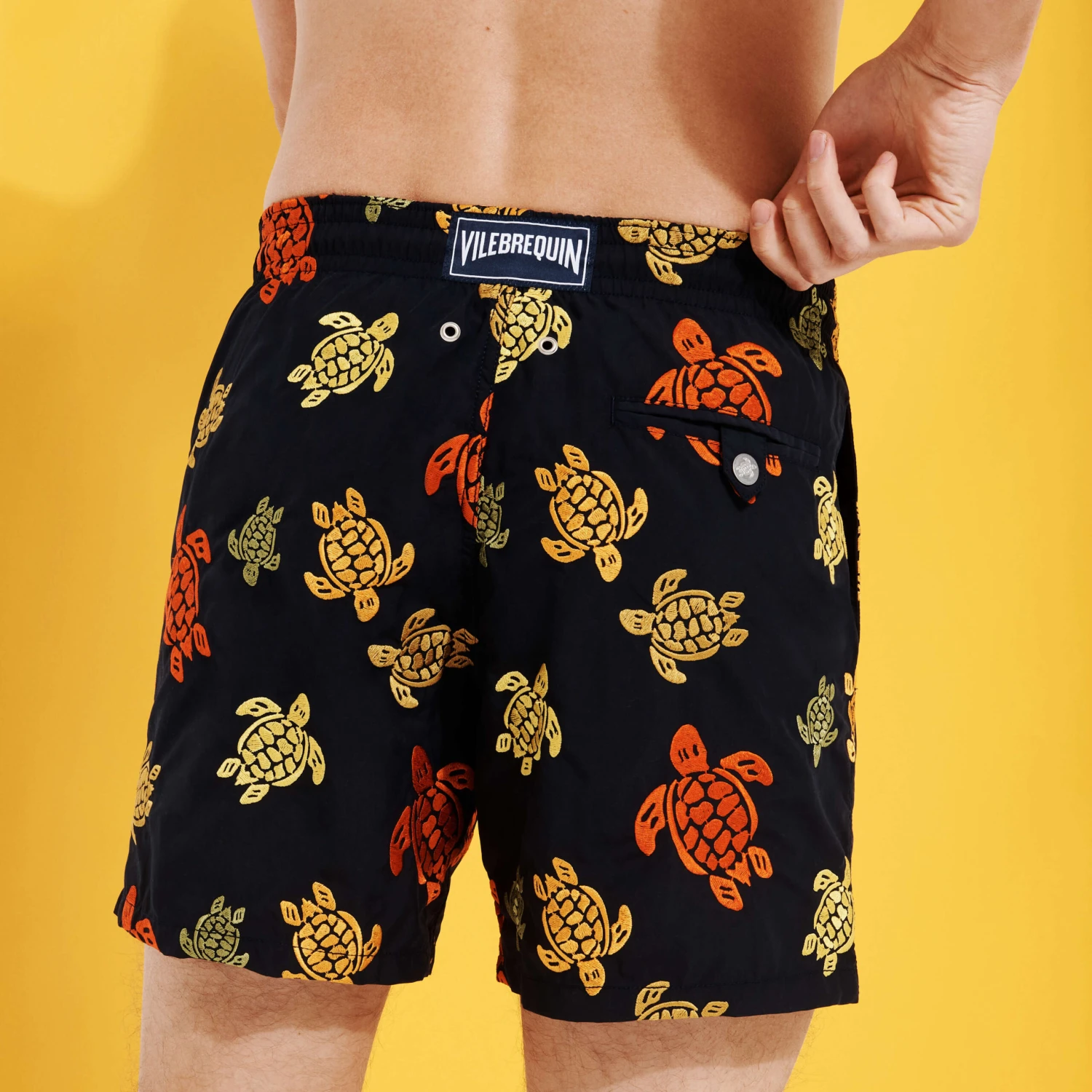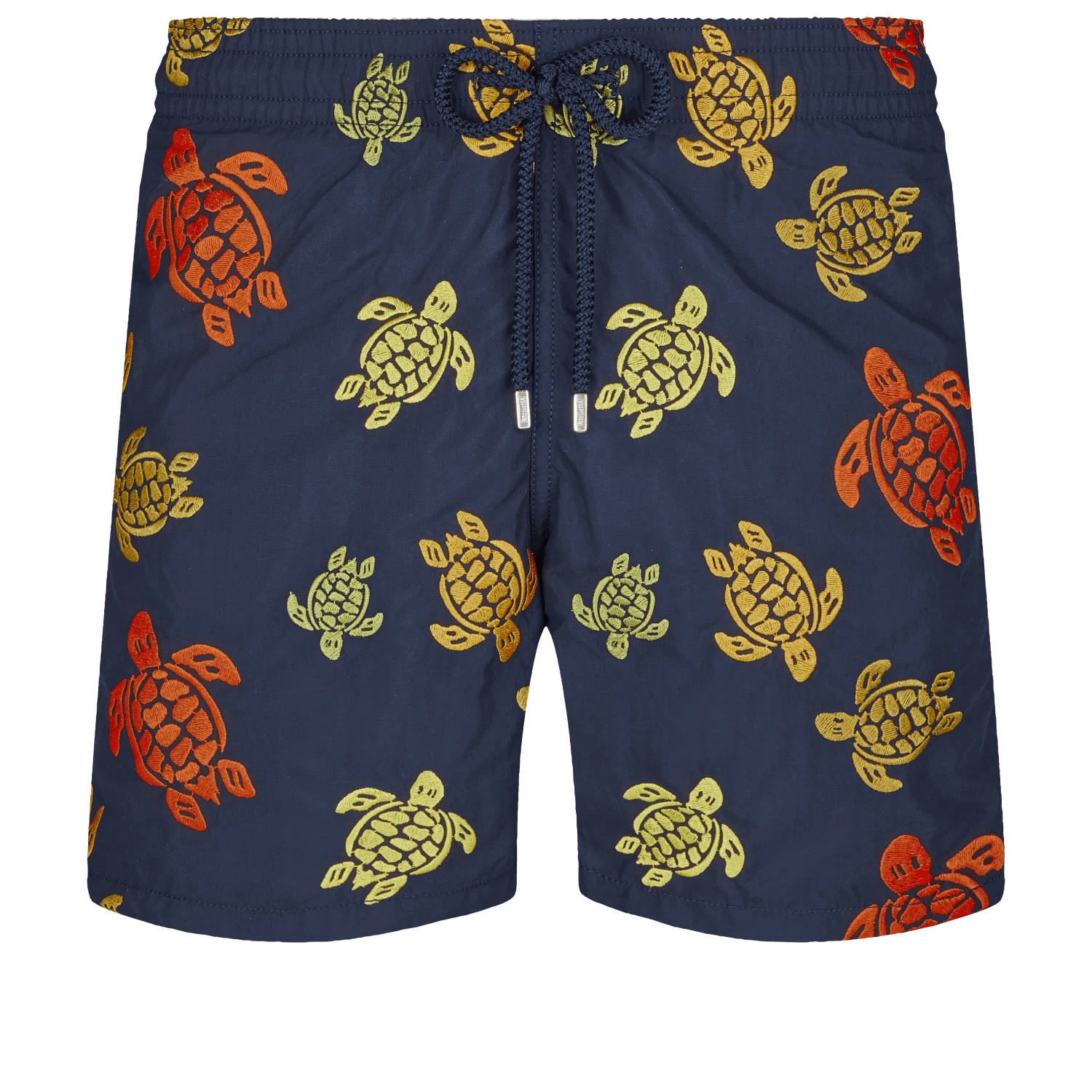 Go back in time and experience Vilebrequin’s history with the famous Ronde des Tortues motif embroidered as an all-over pattern on these Mistral shorts. These limited edition men’s swimming trunks feature silver tips on the drawstring and a custom press stud on the back pocket.