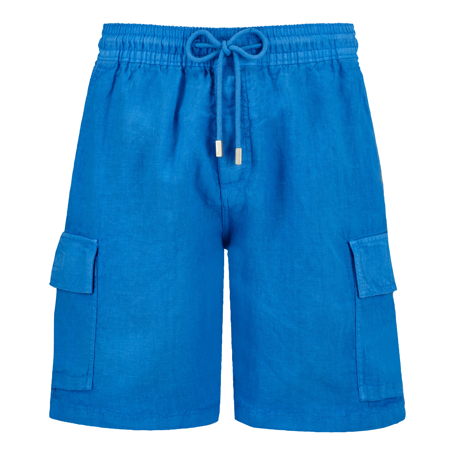 Keep your holiday on track with the Baie Man Bermuda shorts. With a casual design and cargo pockets, these soft and comfortable linen Bermuda shorts are perfect for any trip. On the beach with flip-flops, in the city with a T-shirt or paired with a shirt for a casual evening out, it’s the perfect choice for summer.
