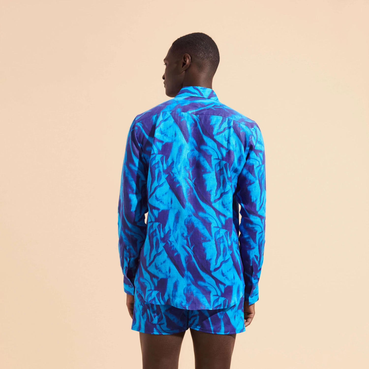 - Straight-cut, relaxed-fit, long-sleeved men’s linen shirt. Chest measurement in size M: 97 to 101 cm