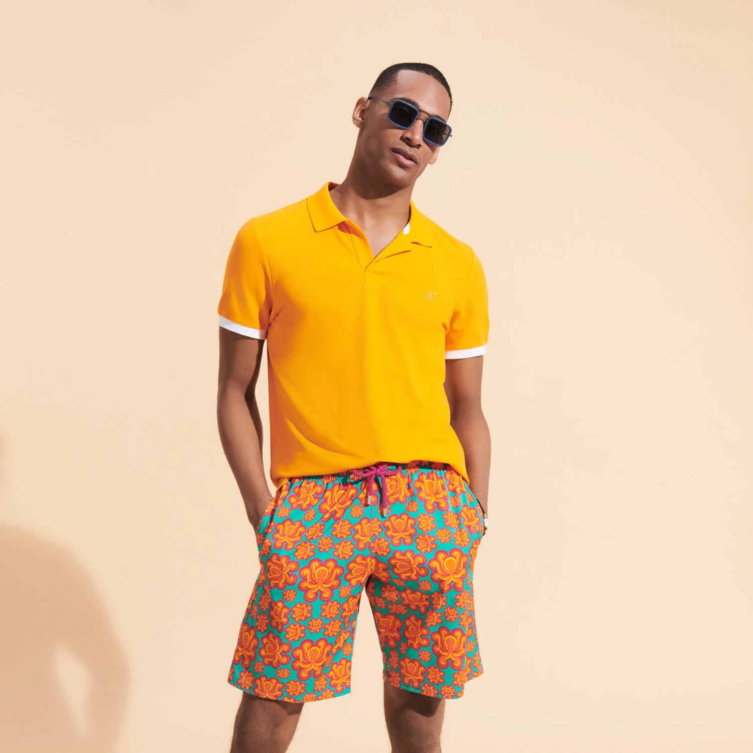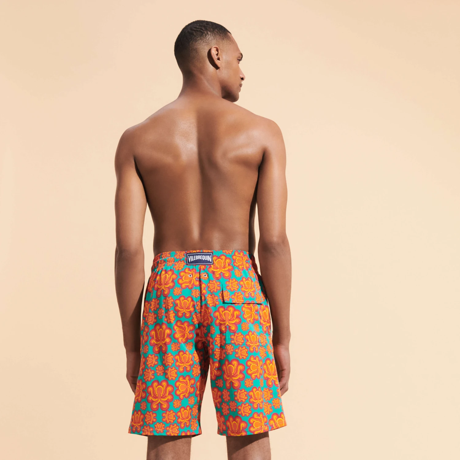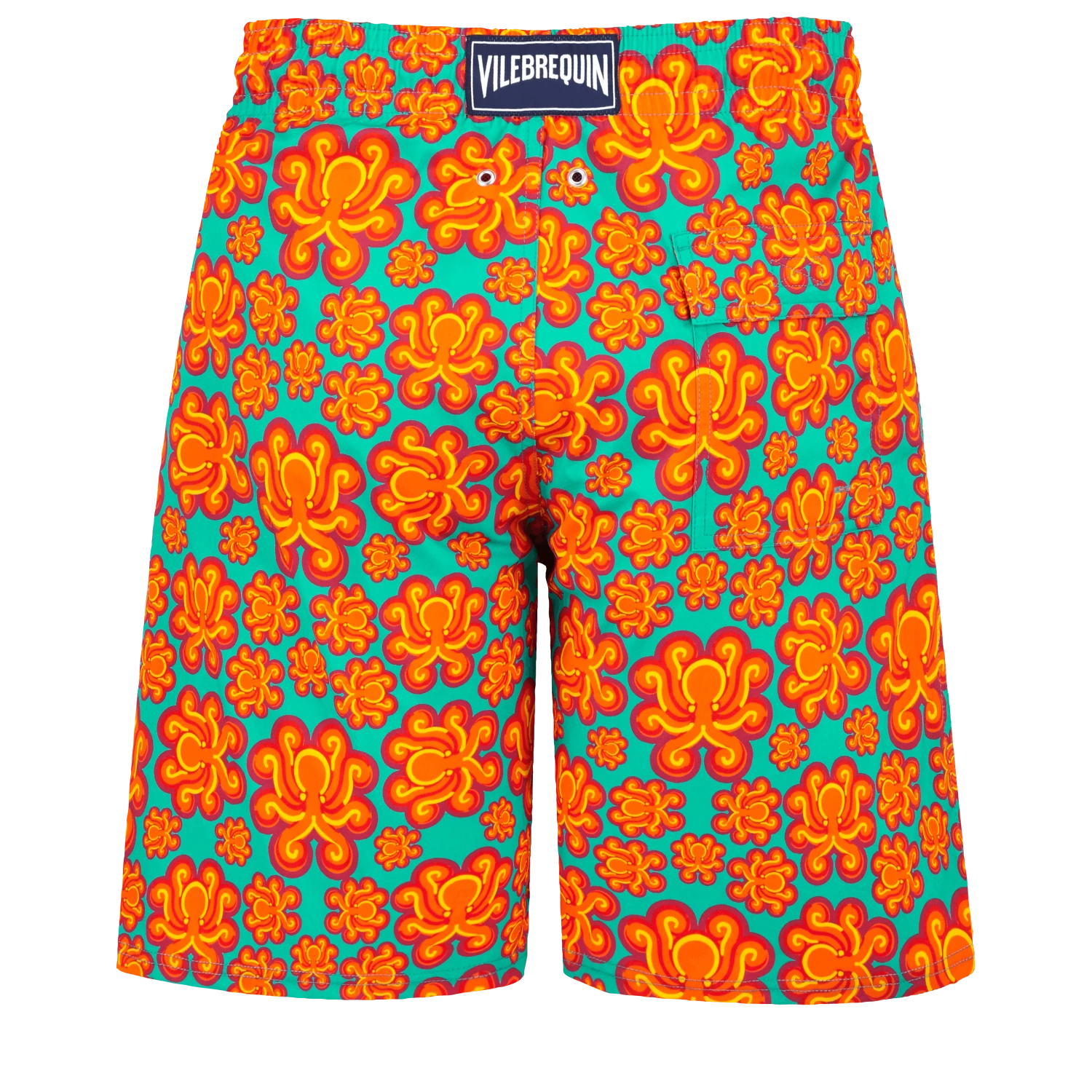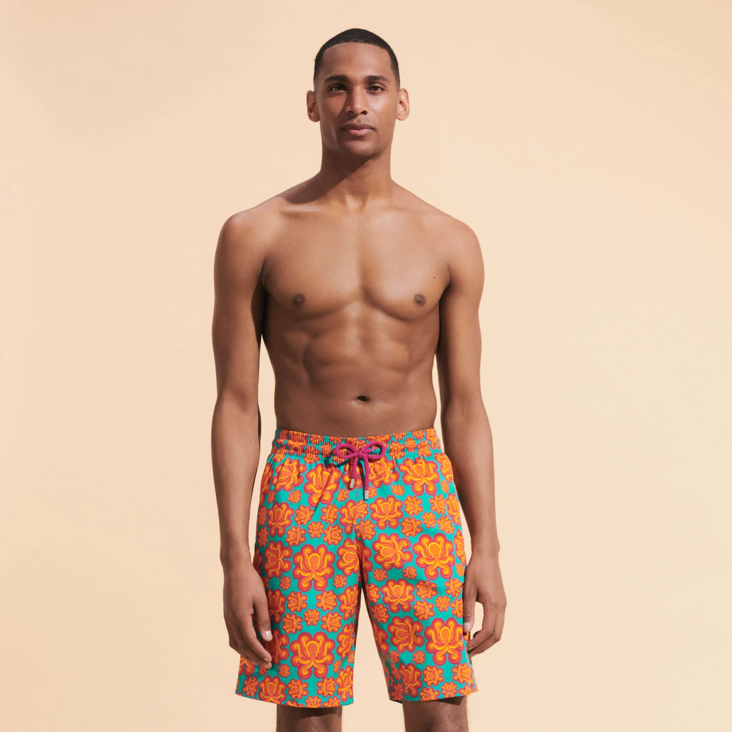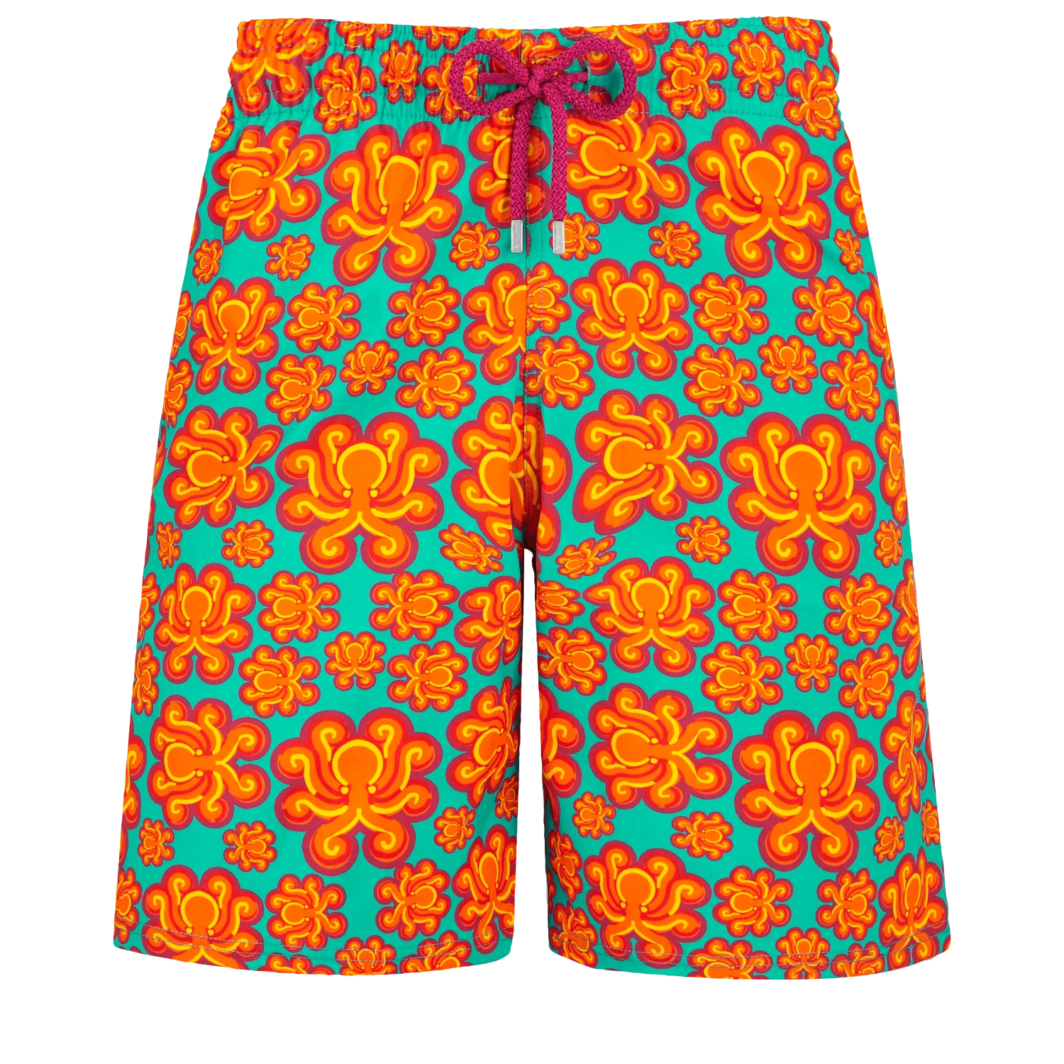 Electric colours and psychedelic graphics have a seventies feel to them. Let yourself be carried away, by the Poulpes Neon print on these Okorise long stretch trunks.