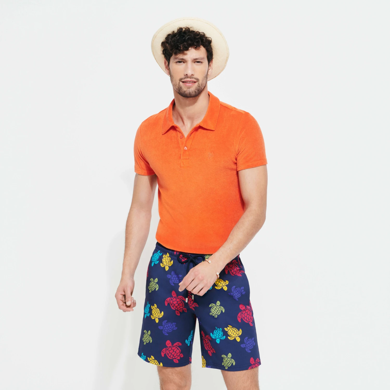 The iconic Ronde des Tortues Multicolore maximises contrasts on these timeless Okorise men’s long swimming trunks. Thanks to their stretch fabric, these casual shorts move with you. The surfer-style cut has three pockets, including a back pocket with a flap.
