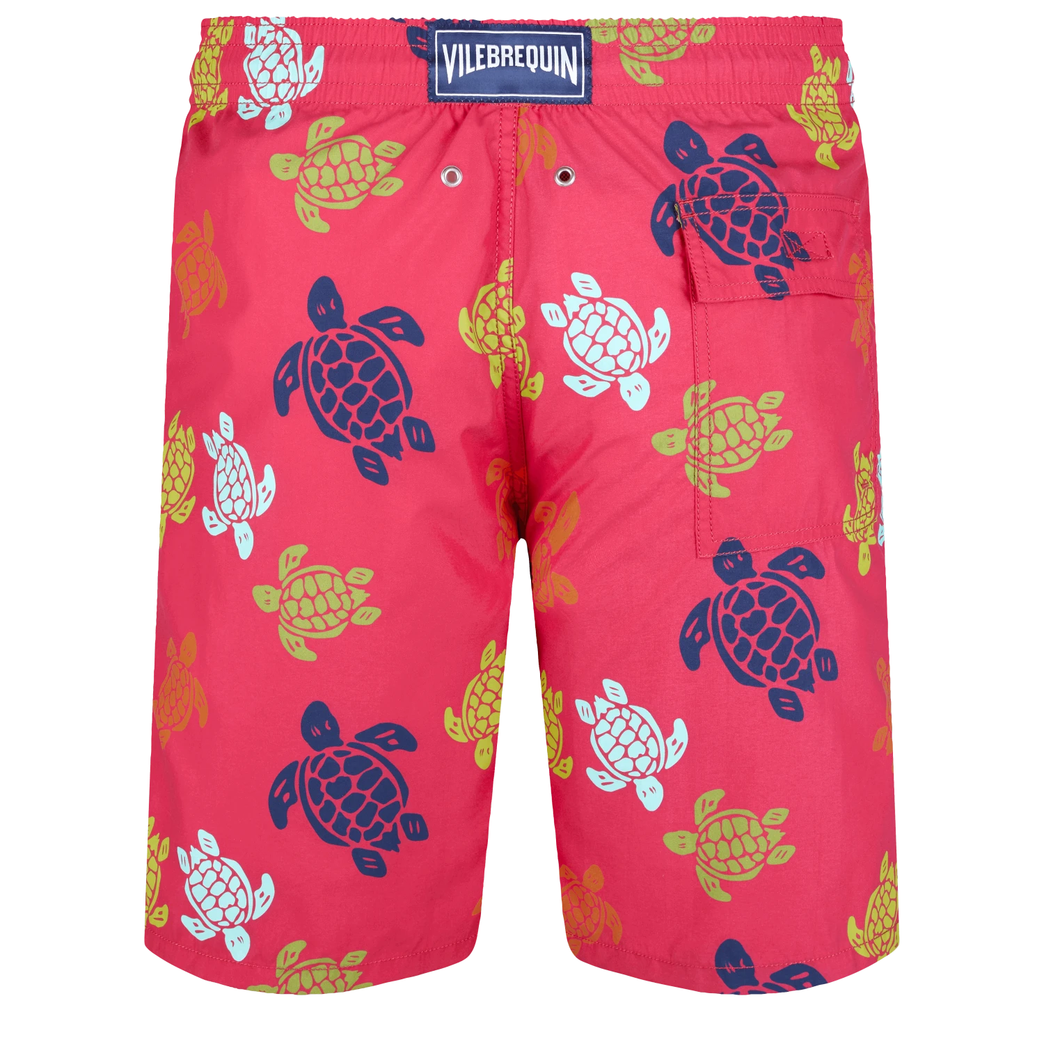 Spice up your swims with the vibrant colours of these Okoa Ronde des Tortues Multicolore men’s long swimming trunks. Their contrasting colours emphasise the flattering cut of these shorts with an elasticated waistband. They have three pockets, one of which fastens on the back.