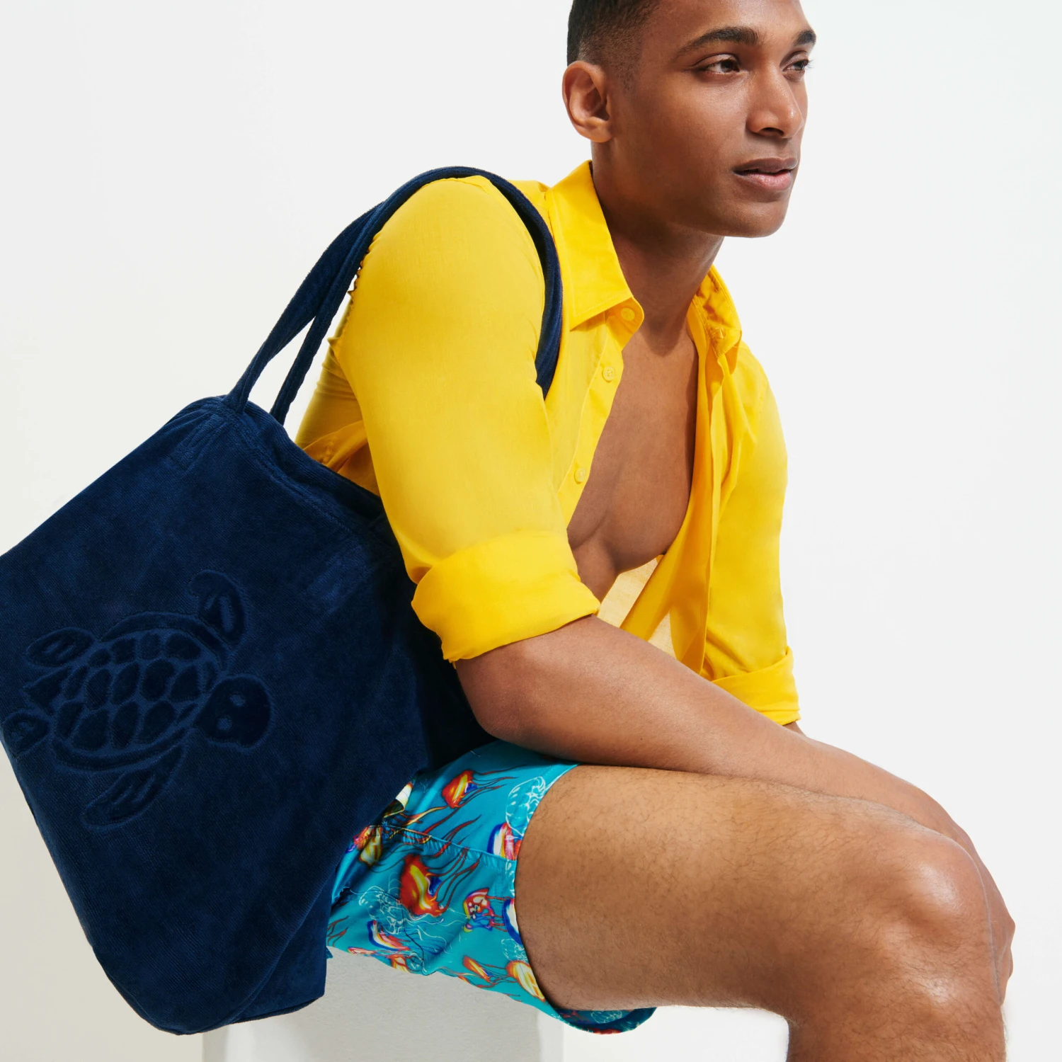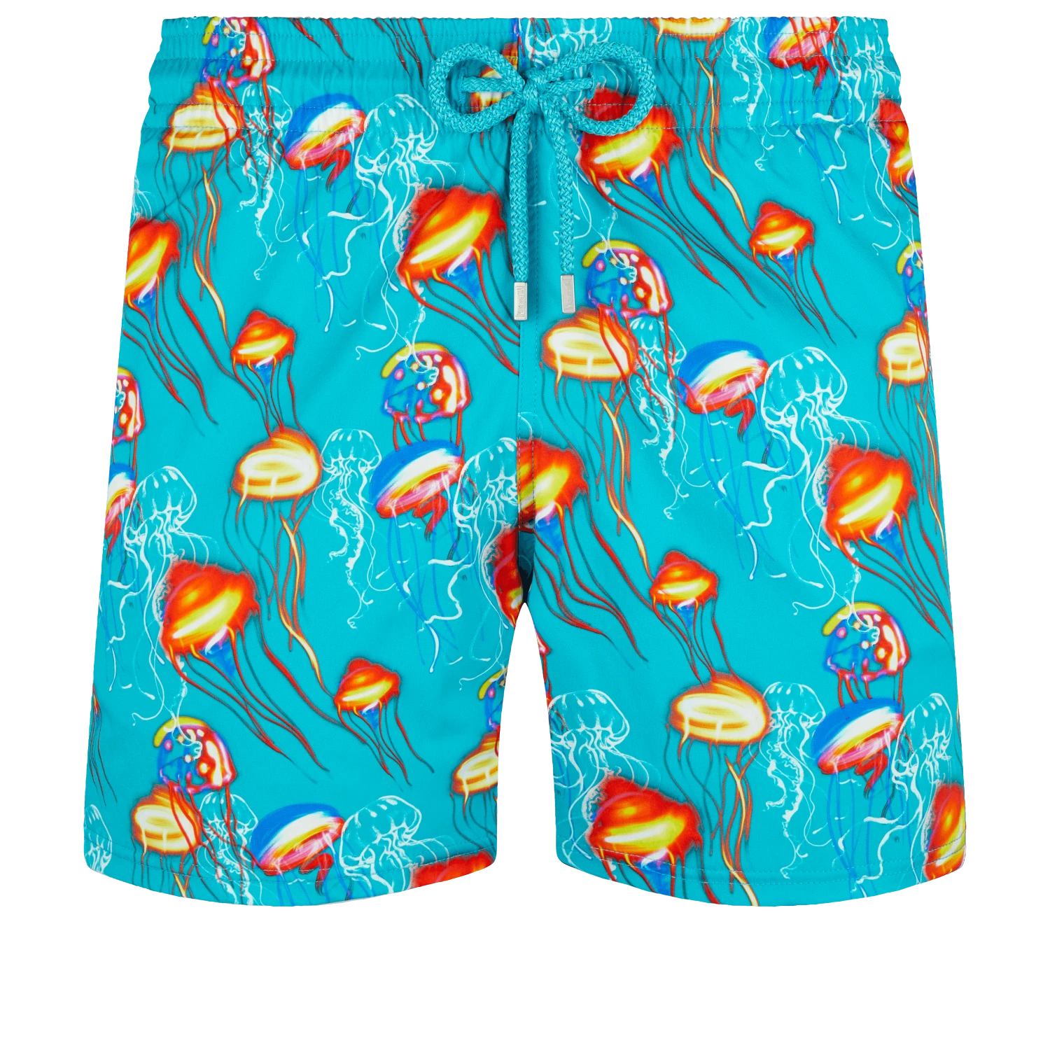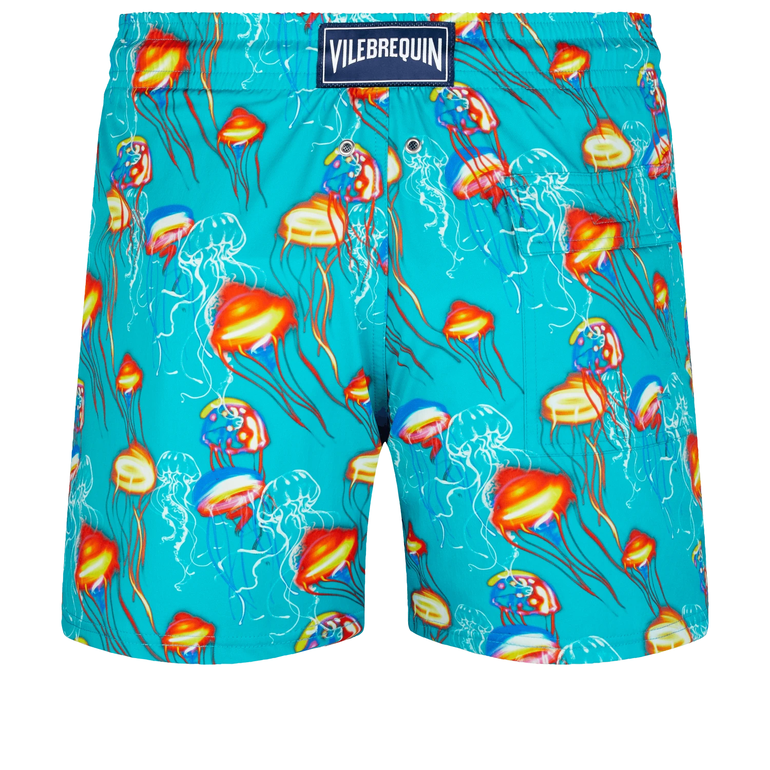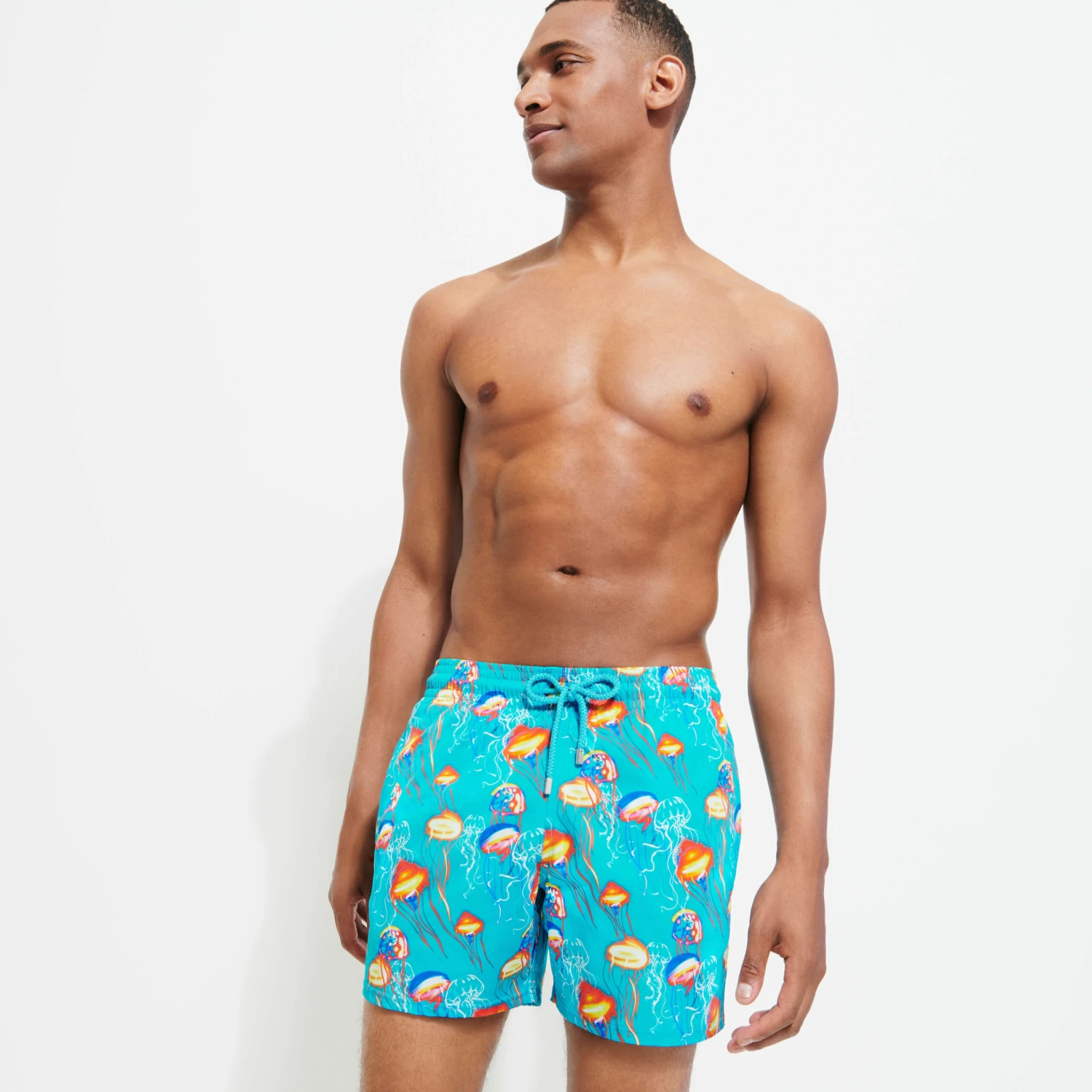 Relight the fire with the glowing jellyfish on these Moorise Neo Medusa men’s stretch swimming trunks. This stretchy classic combines a flattering straight cut with an exclusive print in a unique style. They feature three pockets, including the signature Vilebrequin flap pocket on the back.