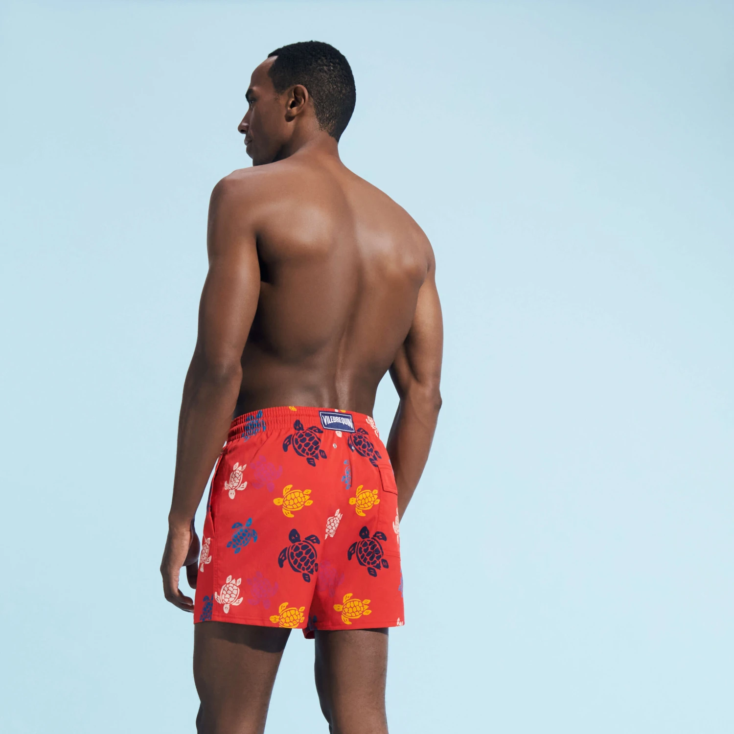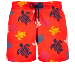Head for the beach in the company of majestic sea turtles. The Ronde des Tortues Multicolore design on these Moorise stretch trunks will turn heads, including yours.