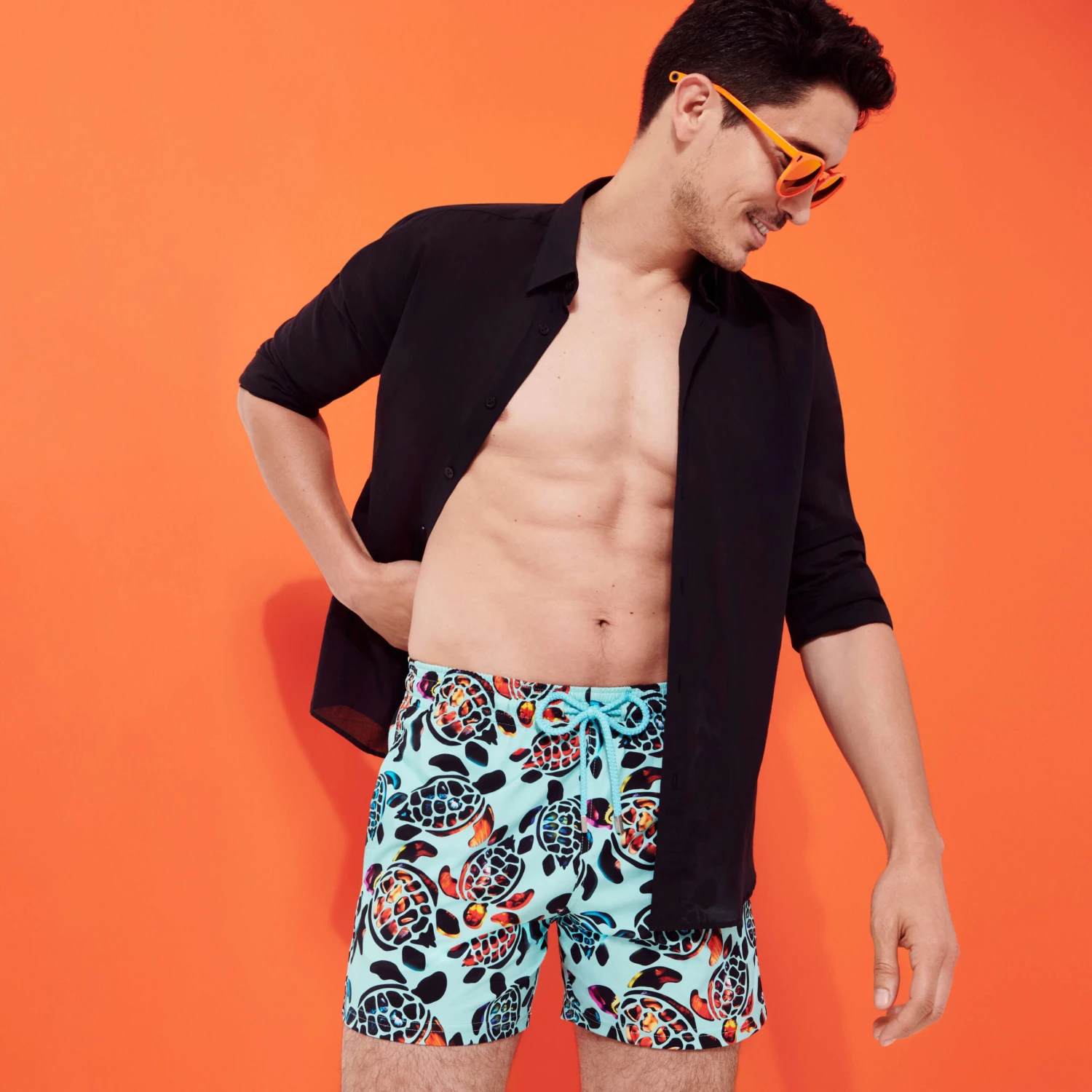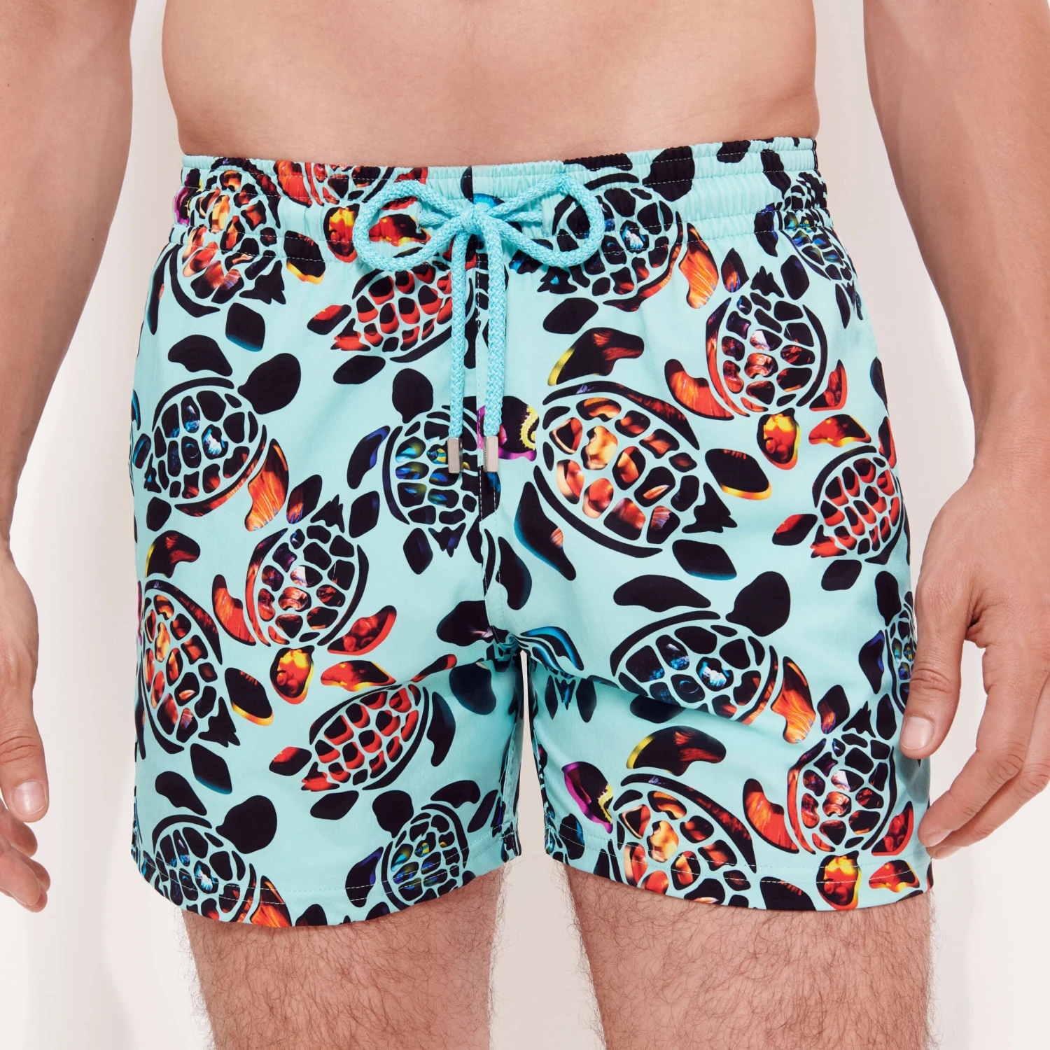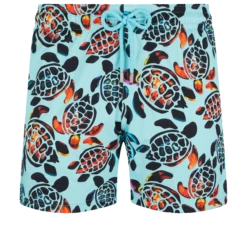 All the colours of nature appear in the graphic patterns on these Screen Turtles men’s stretch short swimming trunks. Embellished with the famous Vilebrequin turtles, these shorts with an elasticated waist and made of stretch fabric are sure to be your go-to this season.
