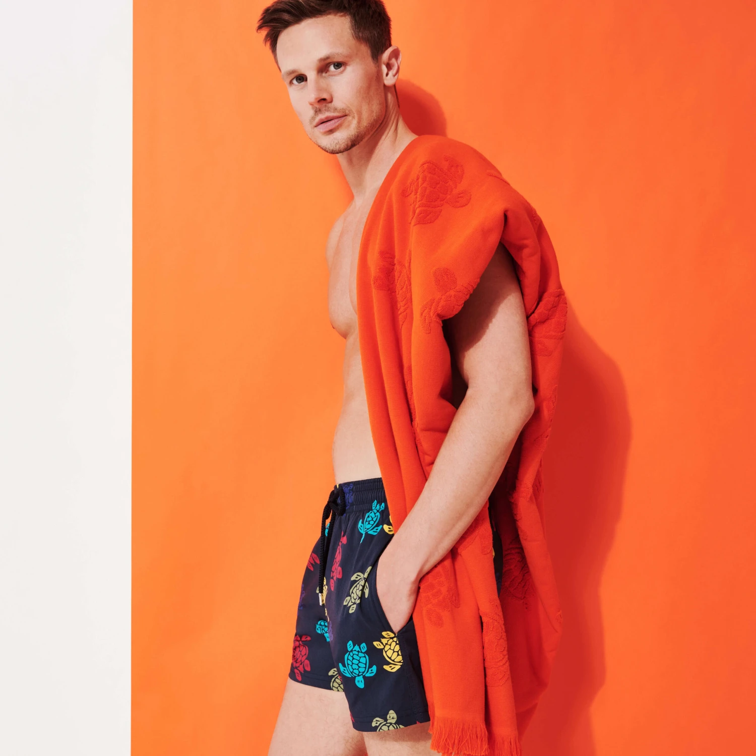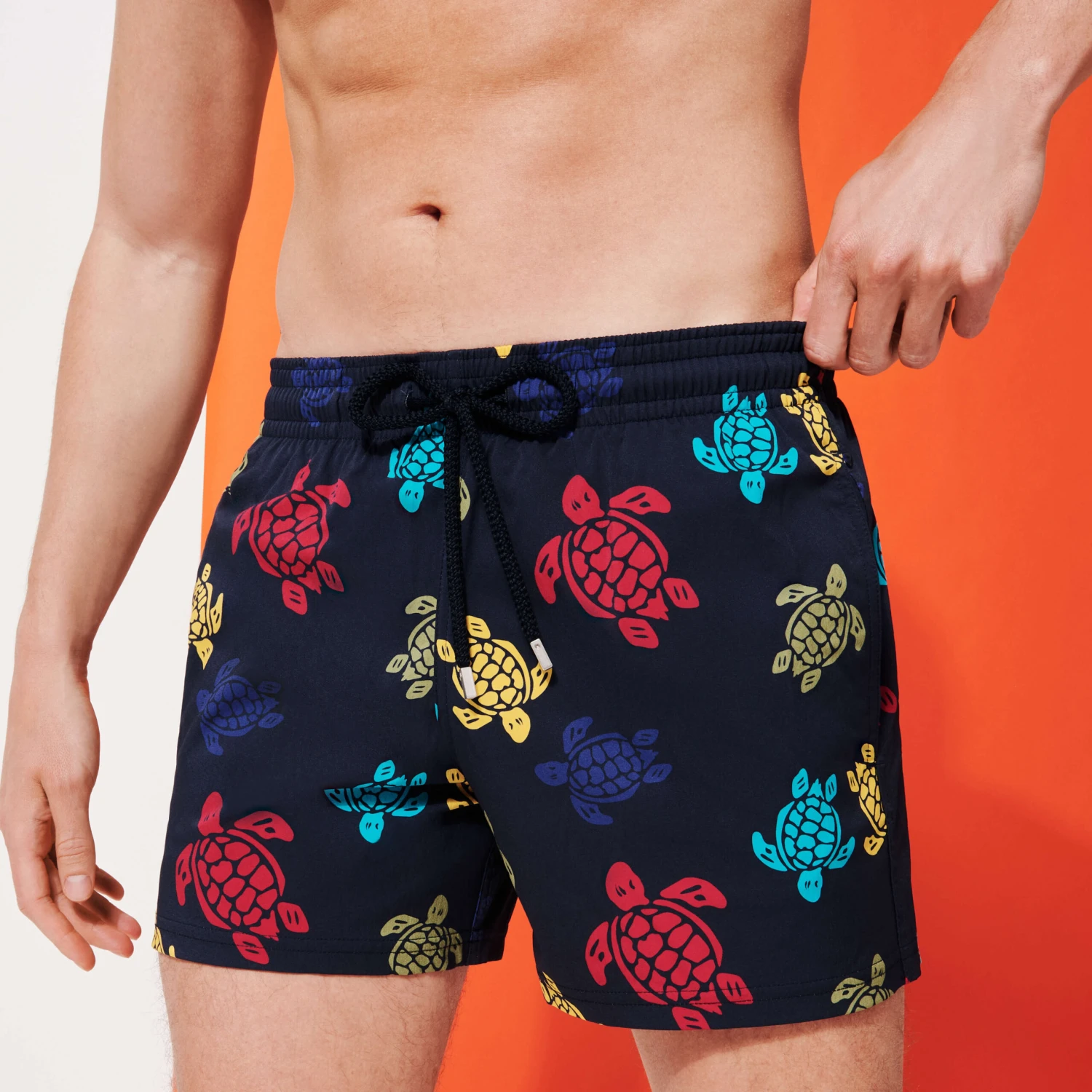 Change reality with the Ronde des Tortues Multicolore Moorise men’s short stretch swim trunks. The contrasting colours accentuate the shorter cut of these three-pocket shorts made from recycled fibres. Practical and comfortable, they’ll make swimming a colourful experience.