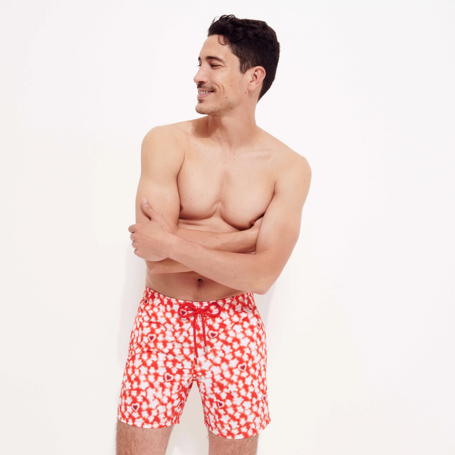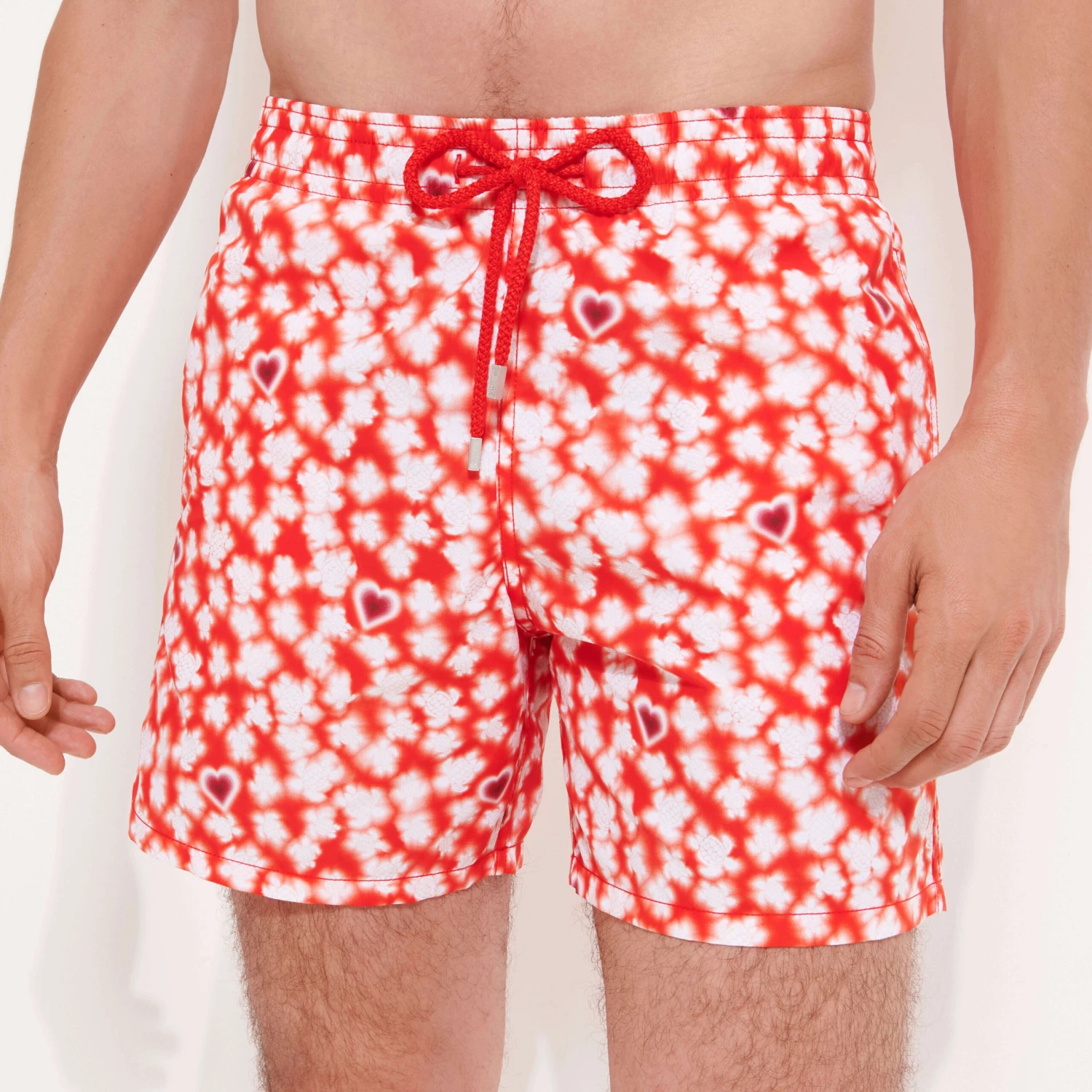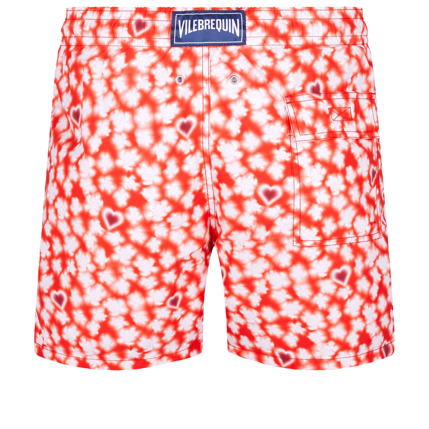 Show your colours with the avalanche of hearts on these Moorea Attrape-Coeur men’s swimming trunks. Their graphic pattern is a new take on the classic Vilebrequin cut of the ‘70s, with its elasticated waistband and drawstring. These straight-fit shorts have a back patch pocket with a flap.