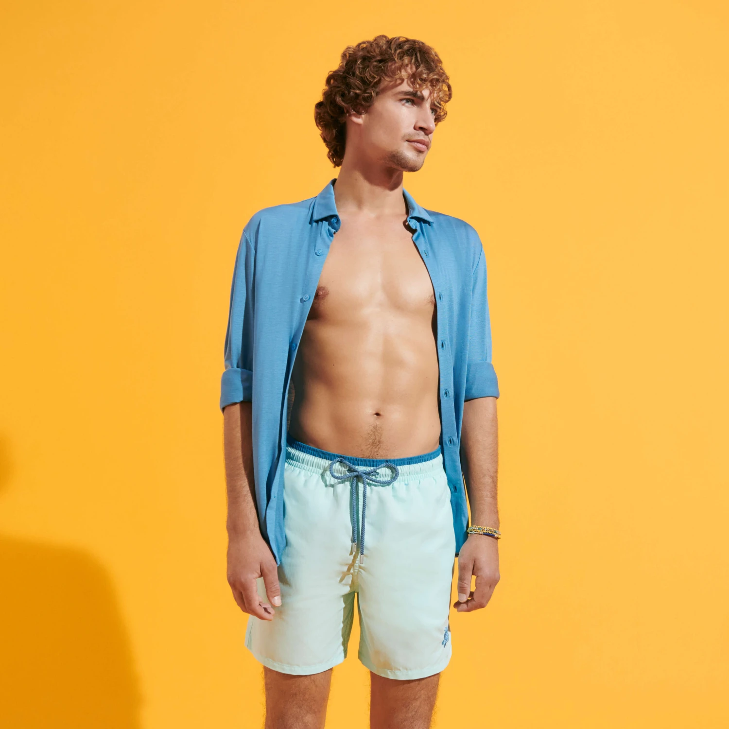Elegance goes minimalist with these plain two-tone Moka swimming trunks. Look for the most serene of sea creatures undulating peacefully as part of a timeless contrast.