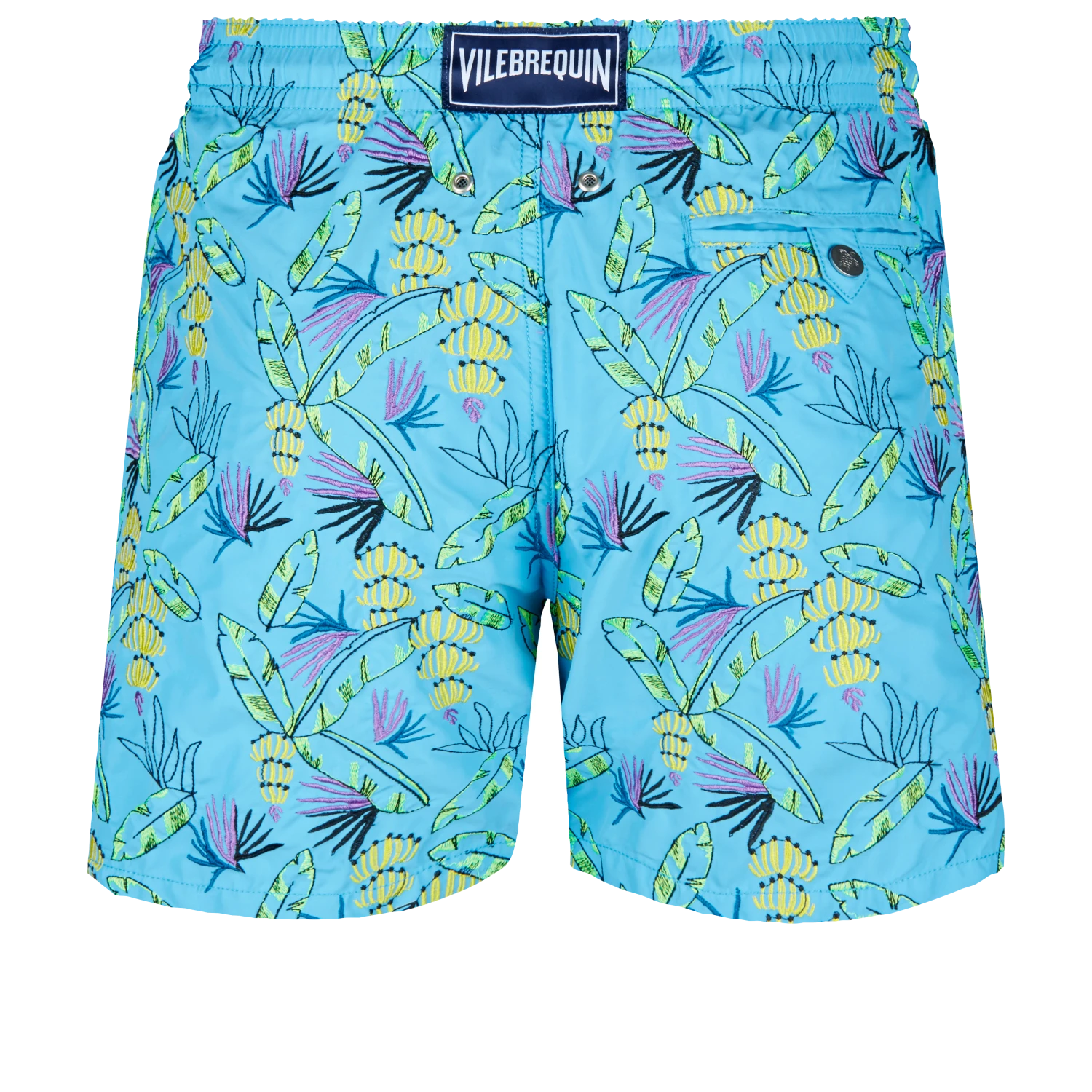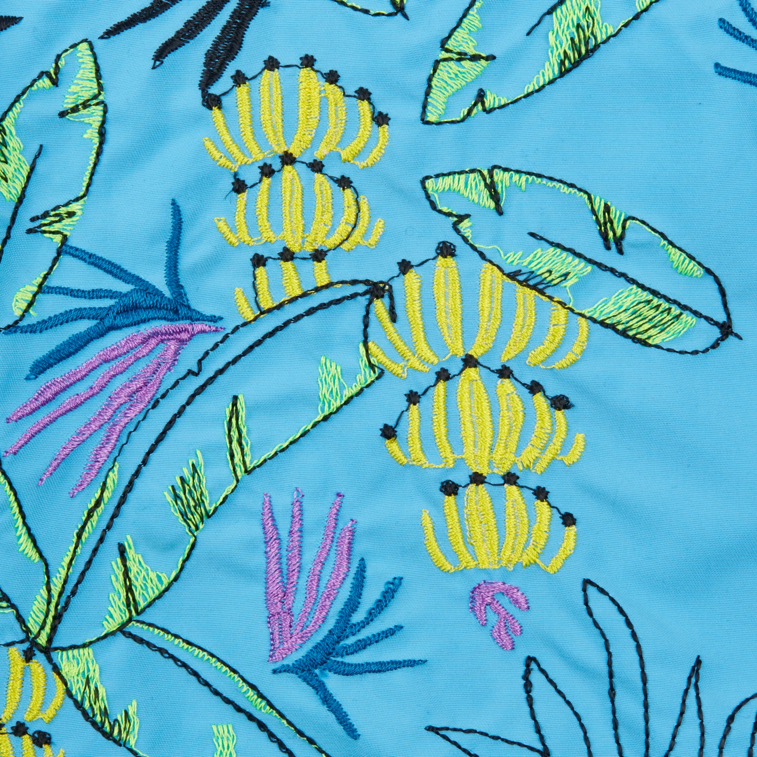 With bunches of bananas embroidered all-over, the Mistral men’s swim shorts take you on an exclusive journey to an exotic land. These numbered and limited edition swim shorts with boast an elegant finish with silver cord tips and a rear pocket fastened with a customised press stud.