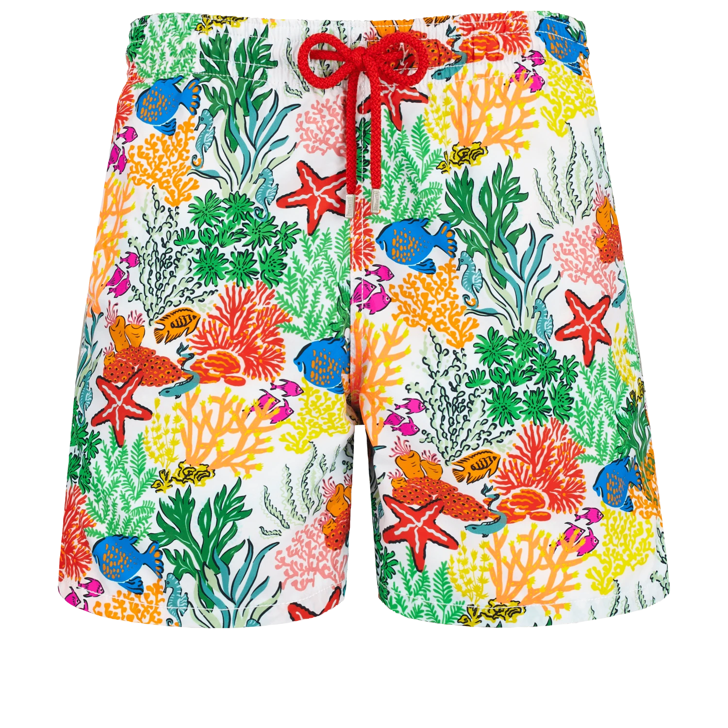 - Swim trunks with elastic waistband (four lines of stitching) and drawstring for perfect adjustment
