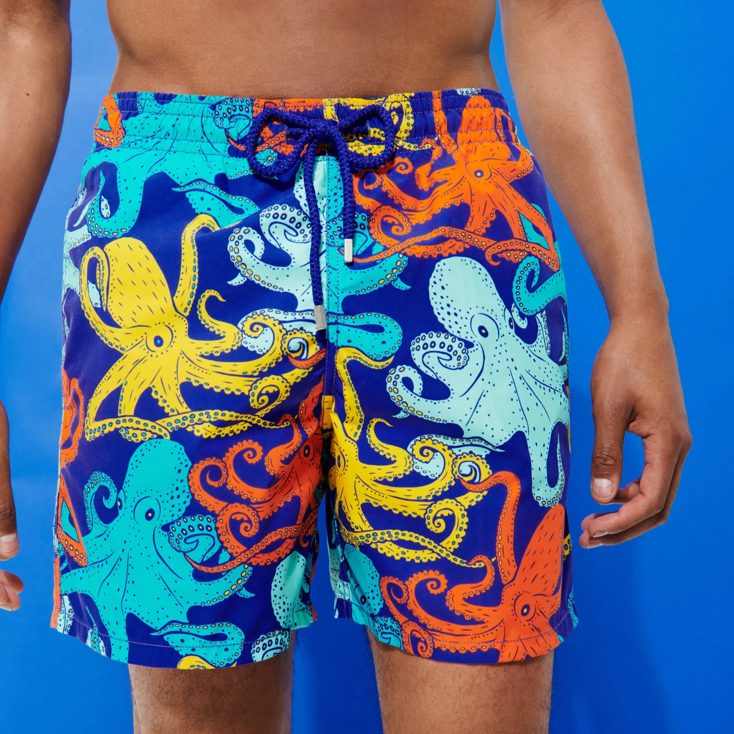 Go for something hypnotic with the technicolour octopuses on these Moorea Octopussy Multicolore men’s swimming trunks. The exclusive print transforms the timeless cut of these classic Vilebrequin three-pocket shorts into something really funky. Comfortable and stylish, they have a drawstring and an elasticated waist.