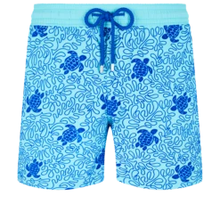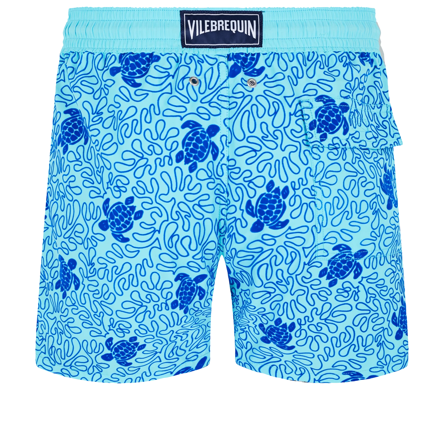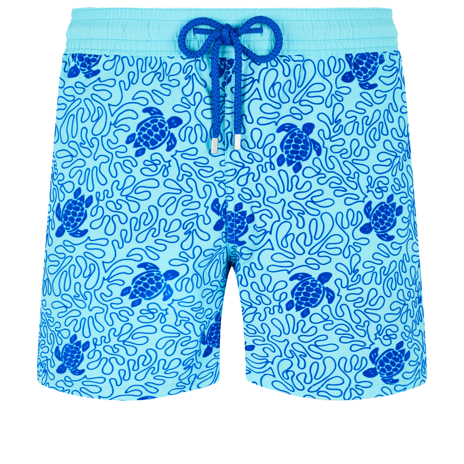 Follow the flocked turtles on these Moorea Turtles Splash men’s swimming trunks, and the deep blue sea will be at your fingertips. Embellished with embossed aquatic motifs, these shorts with their elasticated waistband still feature the original Vilebrequin design with its three pockets.