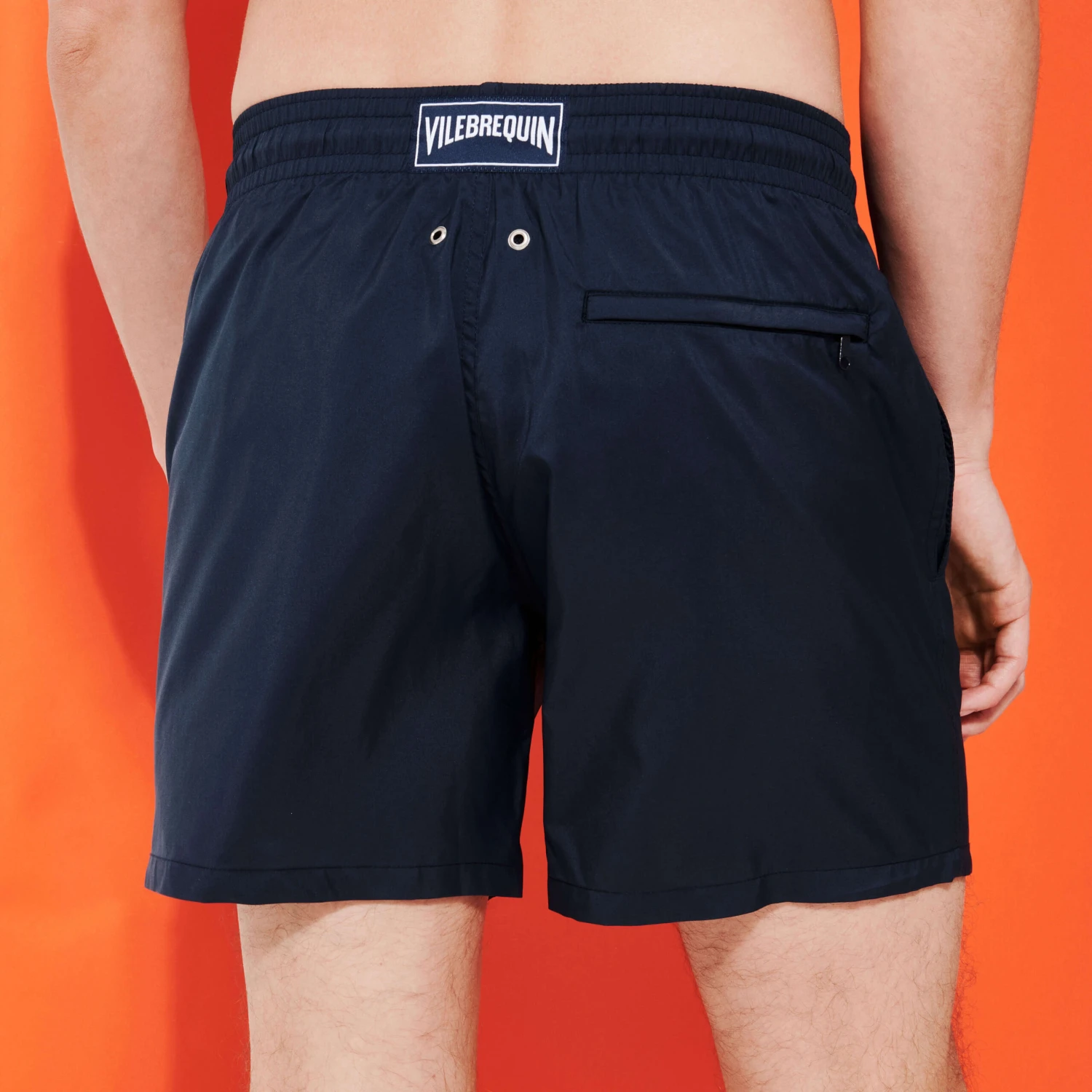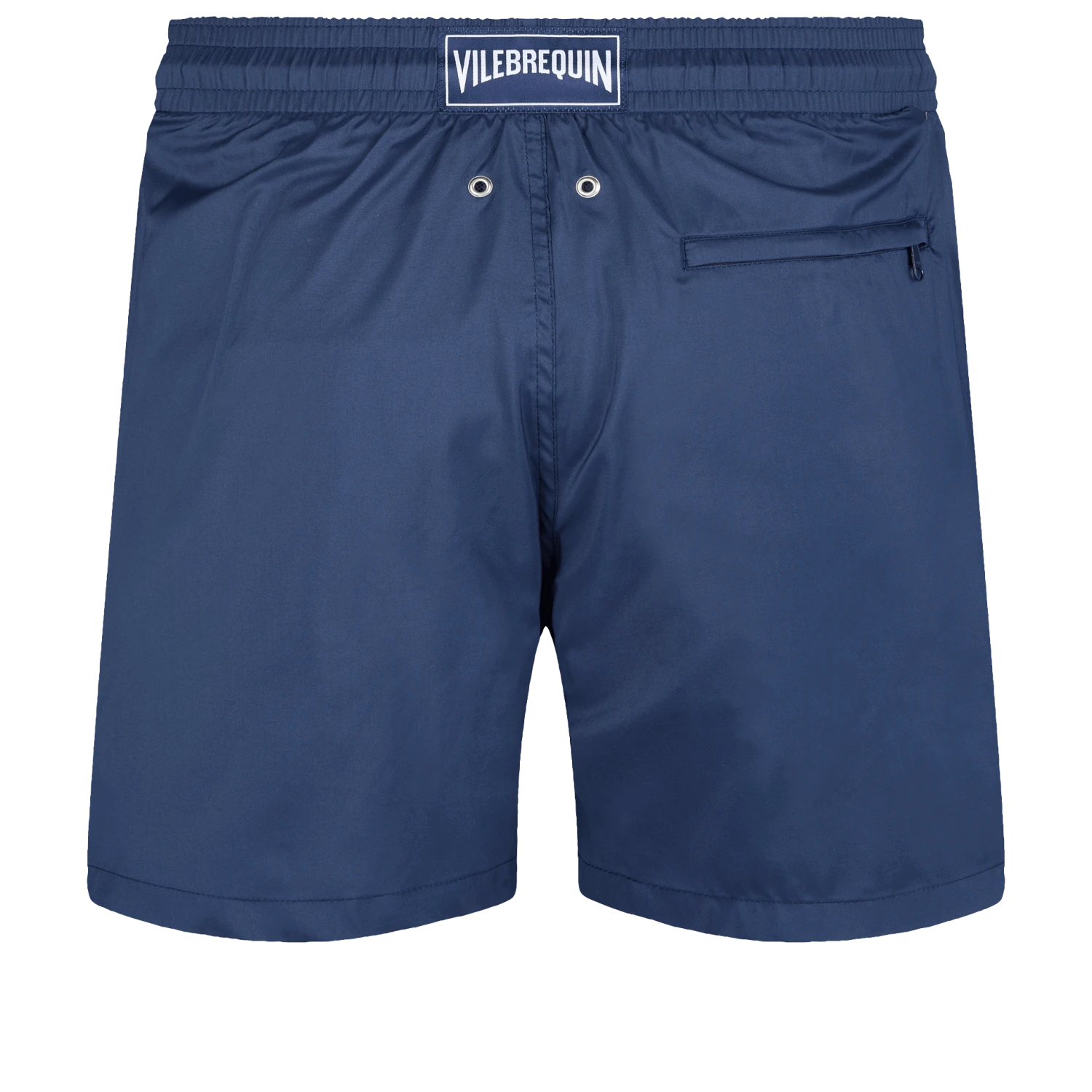 - Ultra-light fabric packable swimwear into the zipped back pocket to become a pouch with a Vilebrequin rubber label