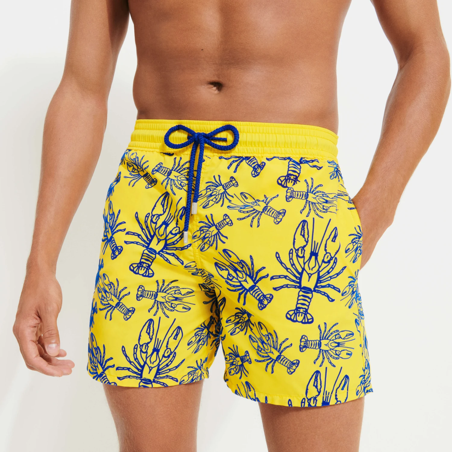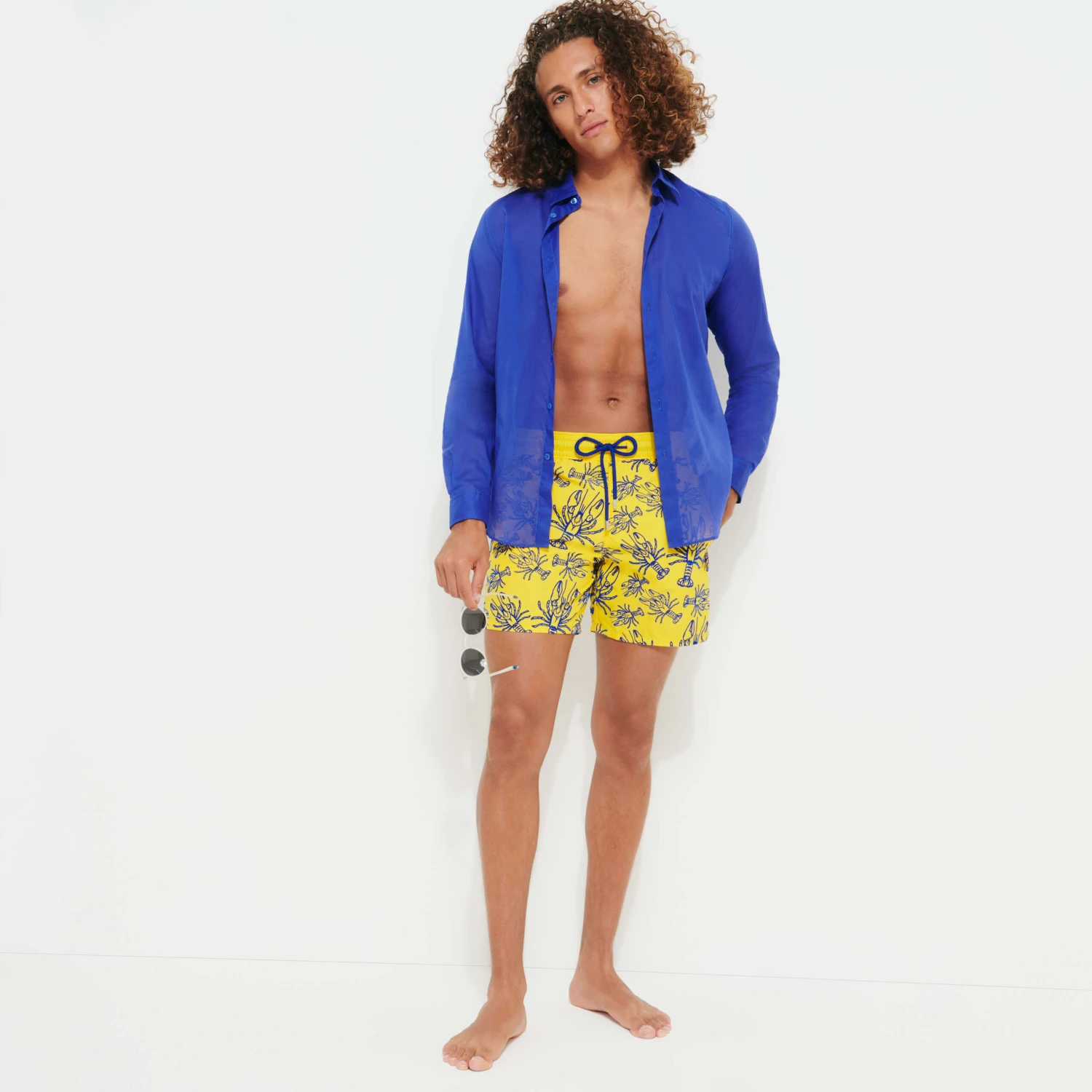 Don’t pinch yourself, you’re not dreaming… A colony of velvety lobsters really has taken over these Moorea Lobster men’s flocked swimming trunks. Their contrasting outlines adorn these iconic Vilebrequin shorts. They have three pockets and a tone-on-tone drawstring.