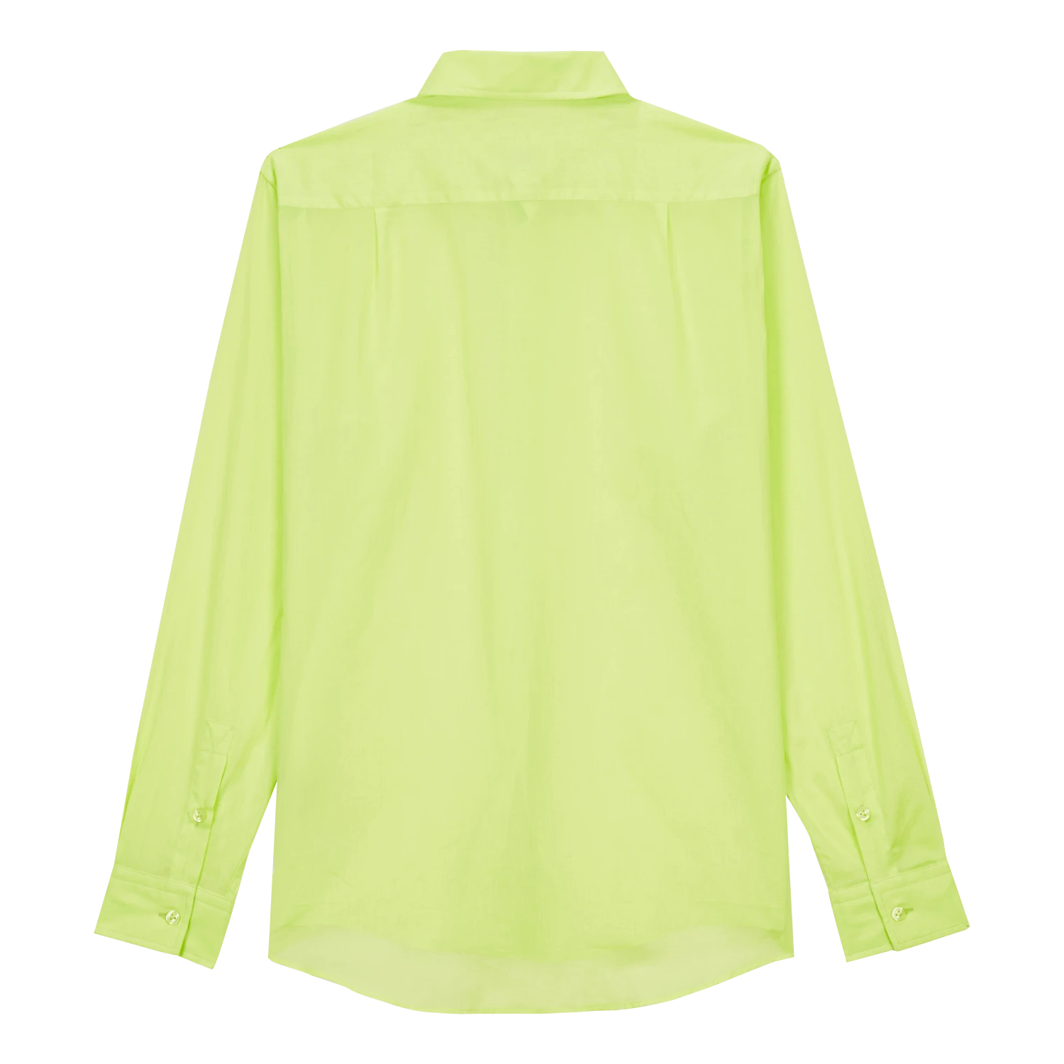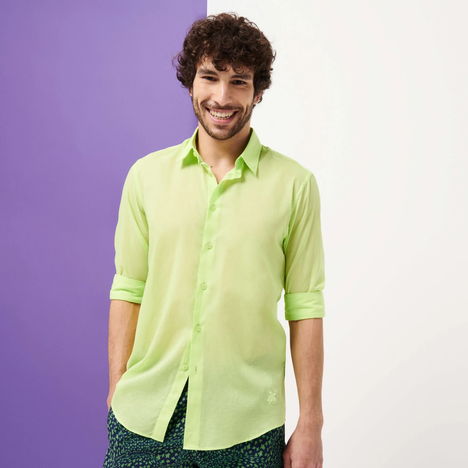 Enjoy the cool of cotton voile in this lightweight unisex shirt with a subtle Vilebrequin turtle in tone on tone embroidery. The soft and colourful Caracal shirt switches from menswear to womenswear in the blink of an eye, worn open or closed, knotted or loose, over a swimsuit or with trousers.