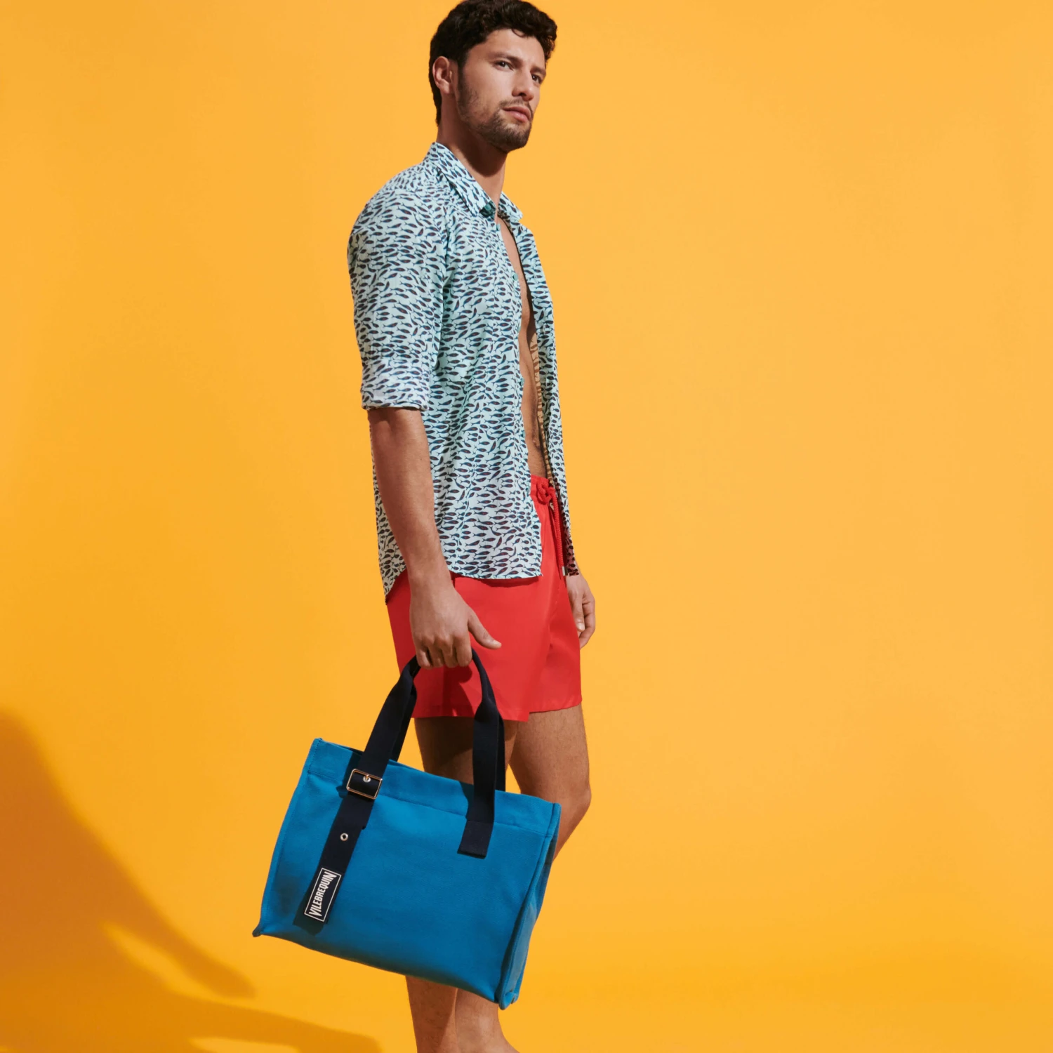 - Tone-on-tone embroidery of the Vilebrequin turtle on the bottom of the shirt