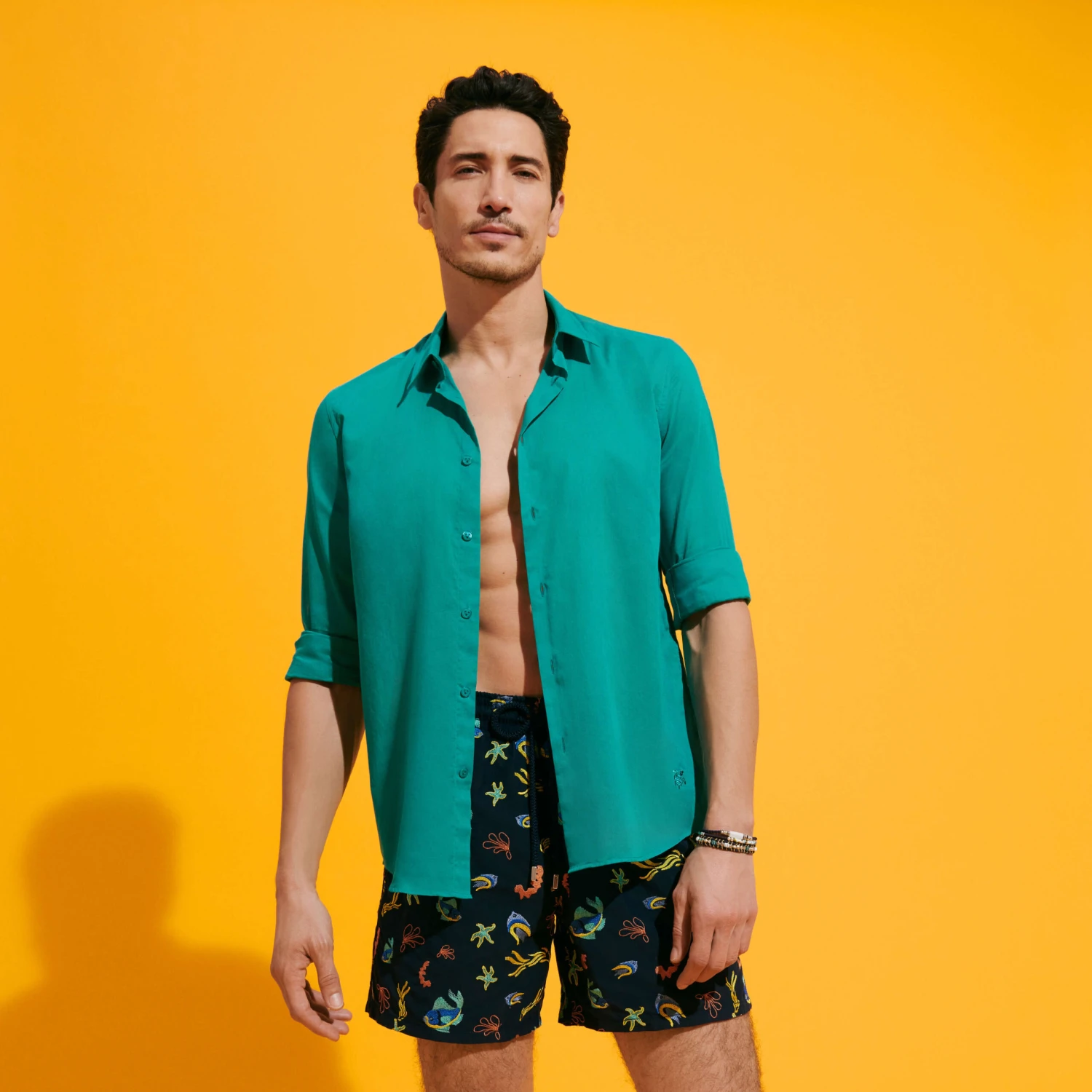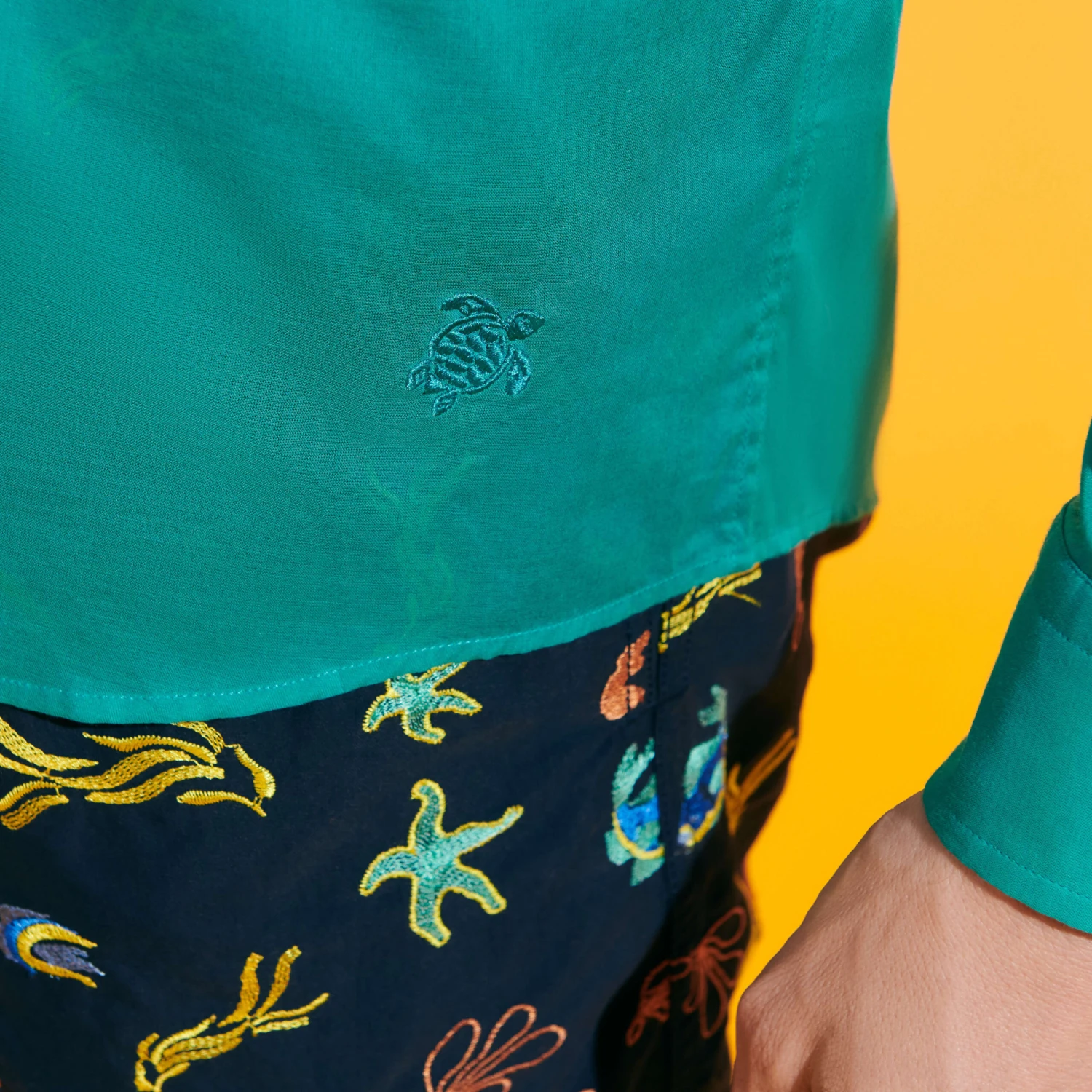 - Tone-on-tone embroidery of the iconic Vilebrequin turtle on the bottom of this Caracal shirt