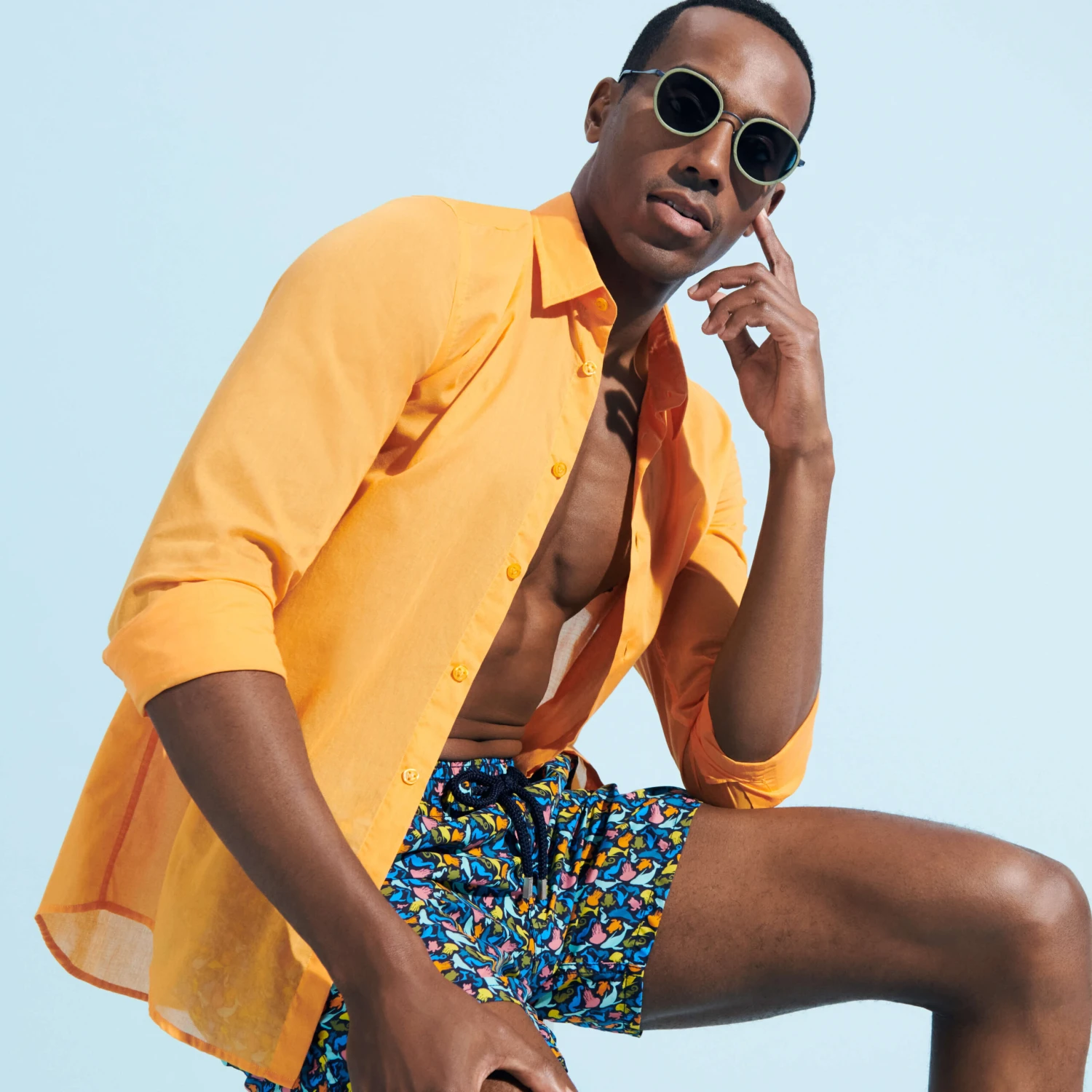 - Tone-on-tone embroidery of the iconic Vilebrequin turtle on the bottom of this Caracal shirt