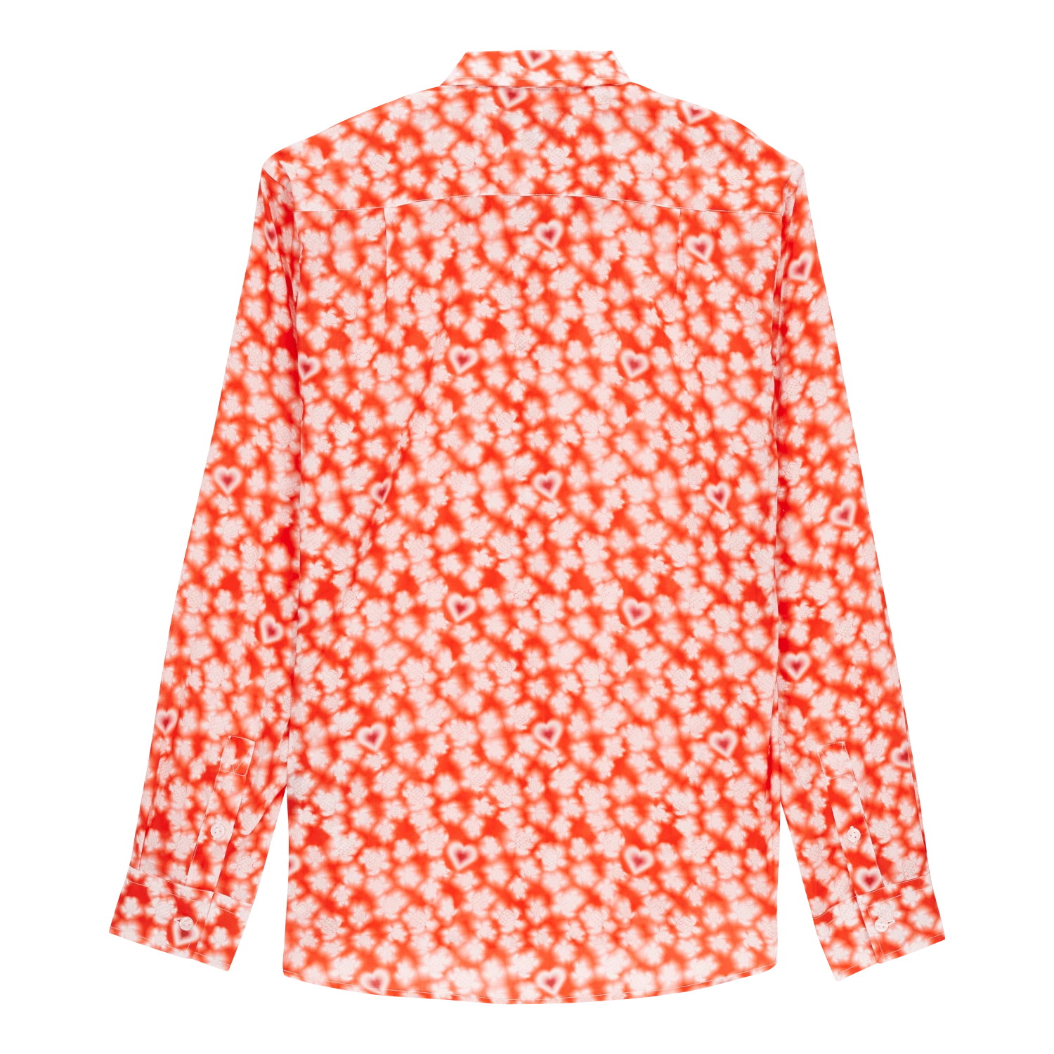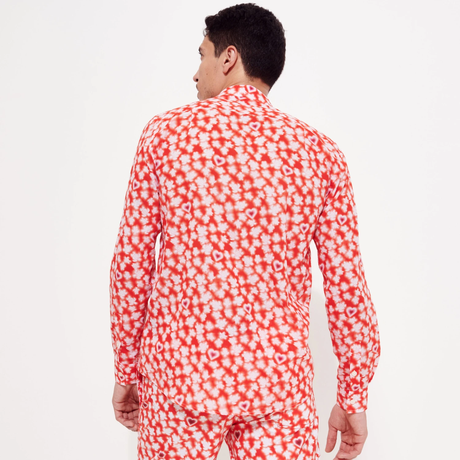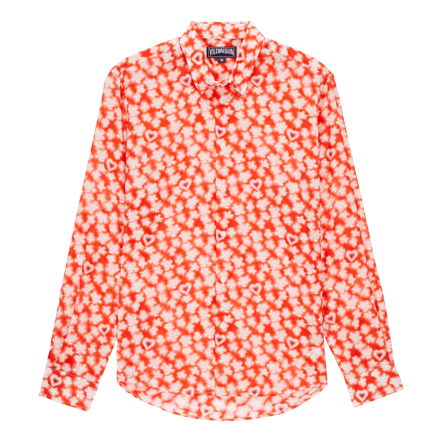 Turtles turn into Cupids on this Caracal Catchers lightweight unisex cotton voile shirt. Its playful patterns and piquant hue will goes with any look, whether it’s for the beach or the evening. An embroidered Vilebrequin turtle is hidden among the hearts.