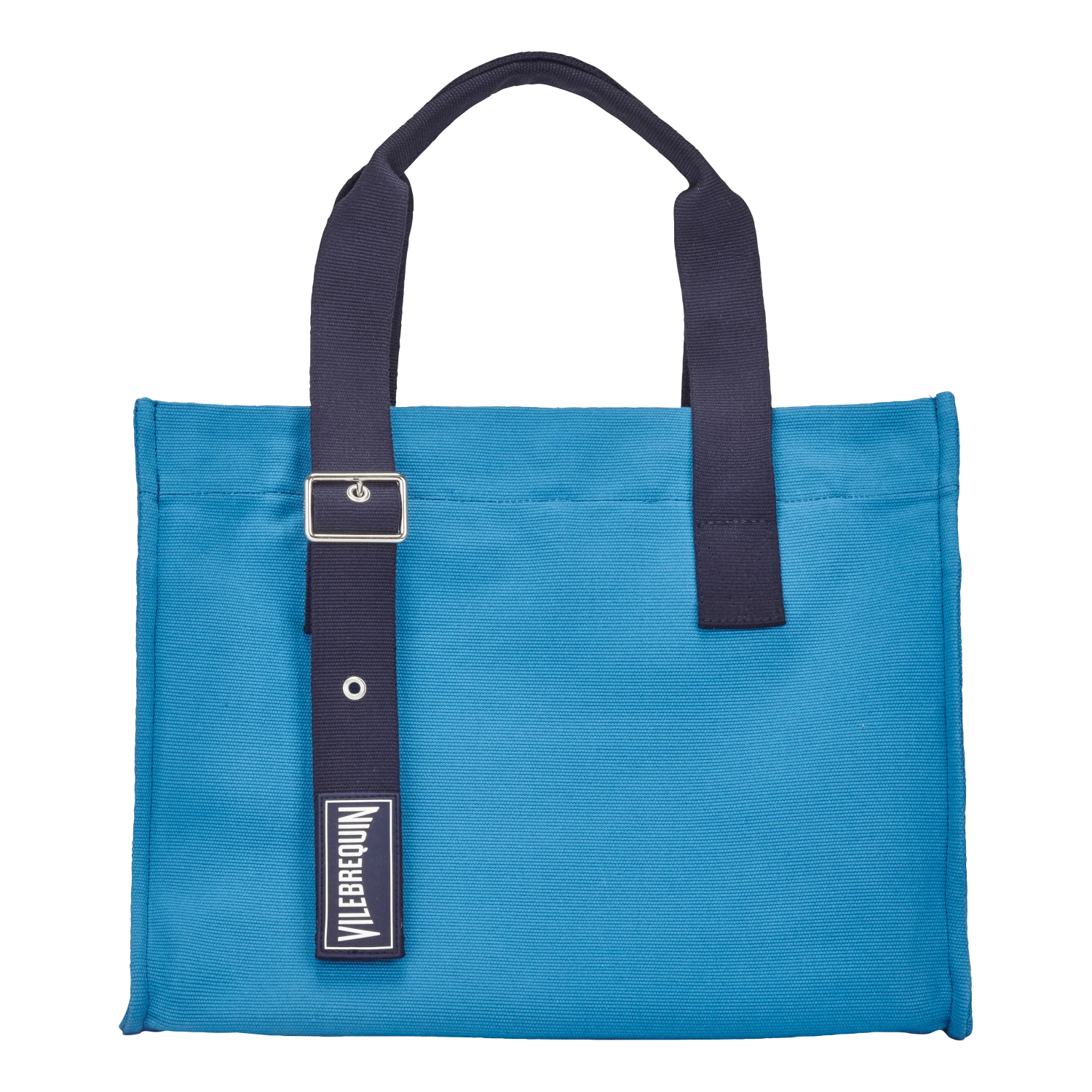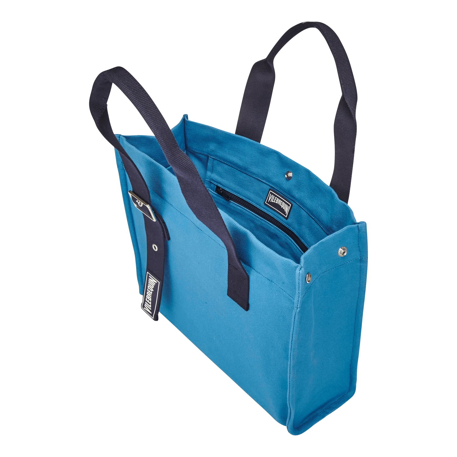 - Two cotton handles, adjustable by two eyelets levels One navy blue patch rubber with Vilebrequin logo on one of the handles and on the inside pocket