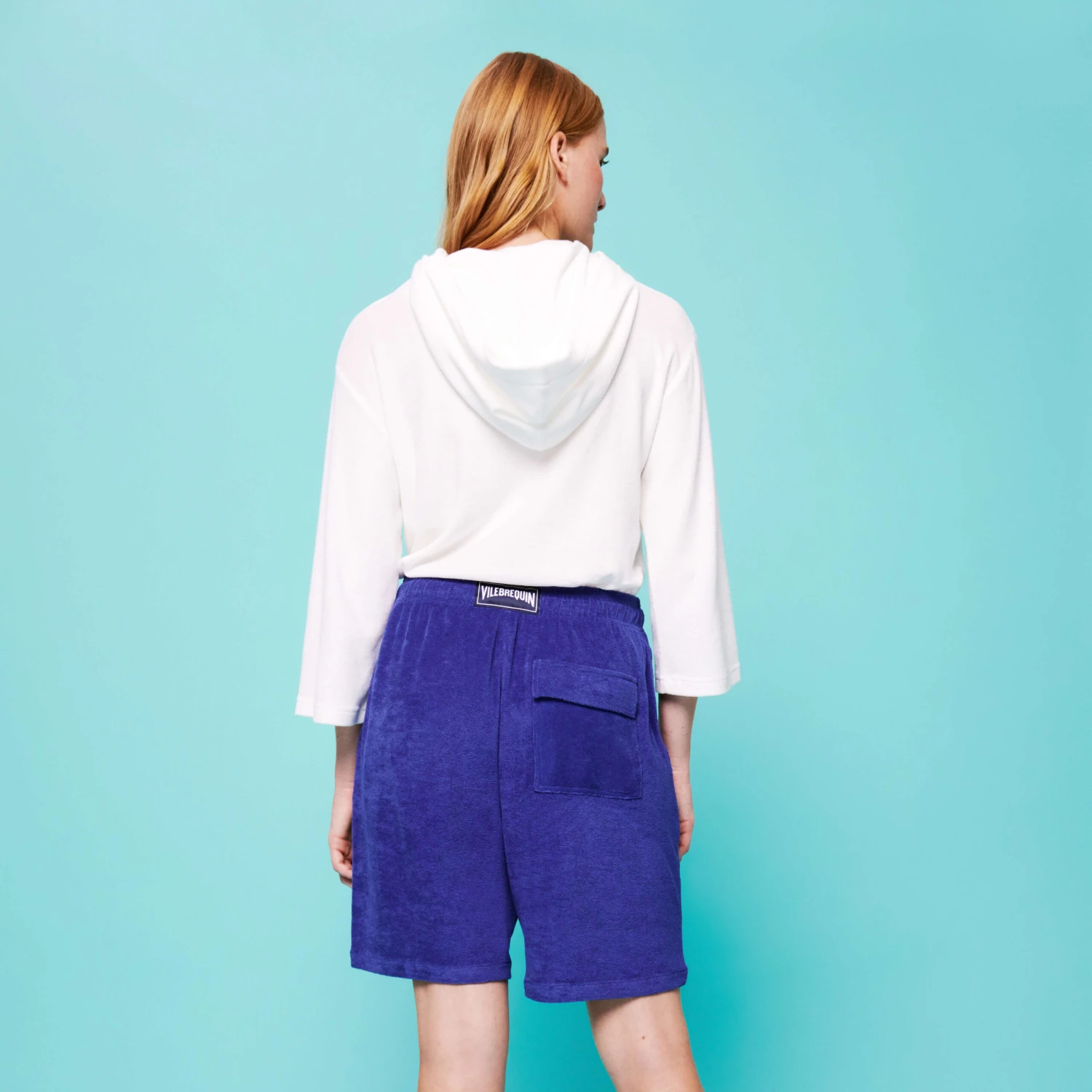 - Back flap pocket with velcro closure and center back Vilebrequin label