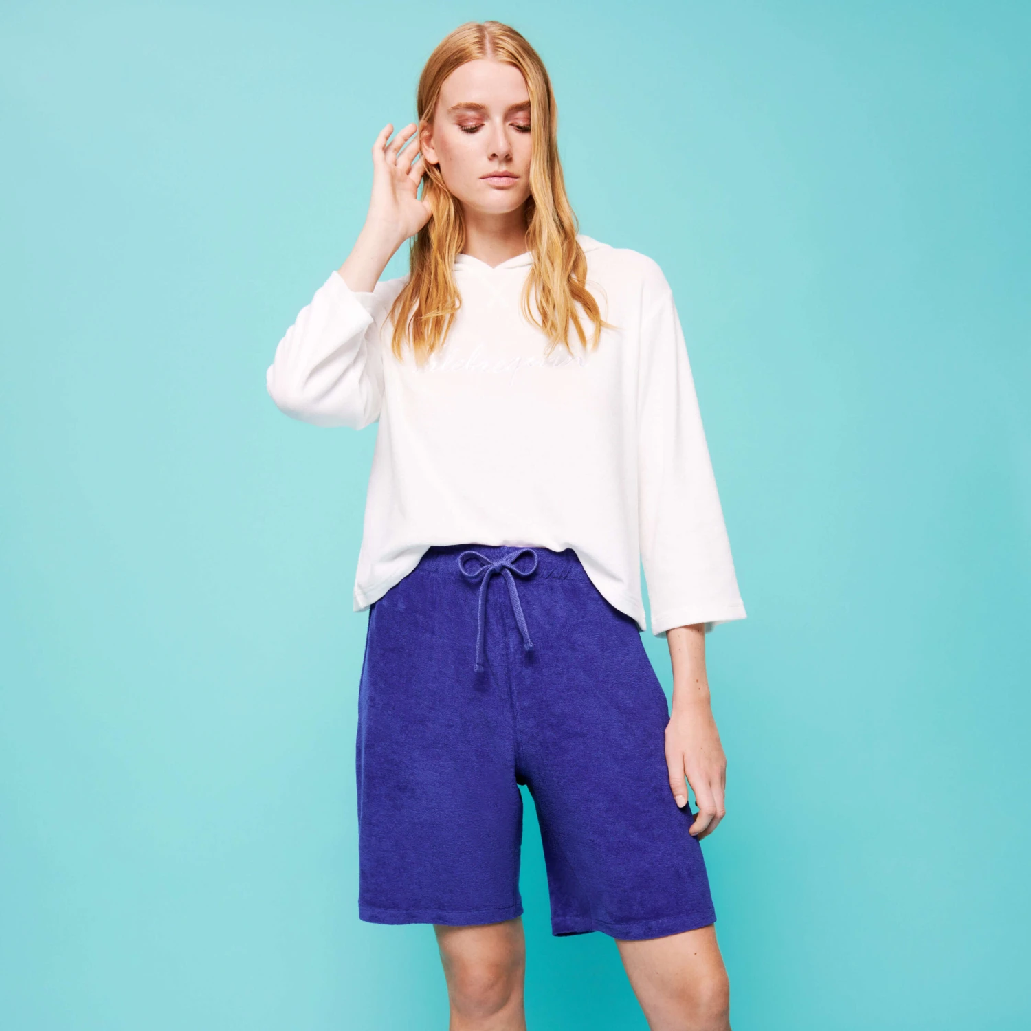 - Elastic waistband, tone on tone drawstring with custom Vilebrequin Zamak metal tips