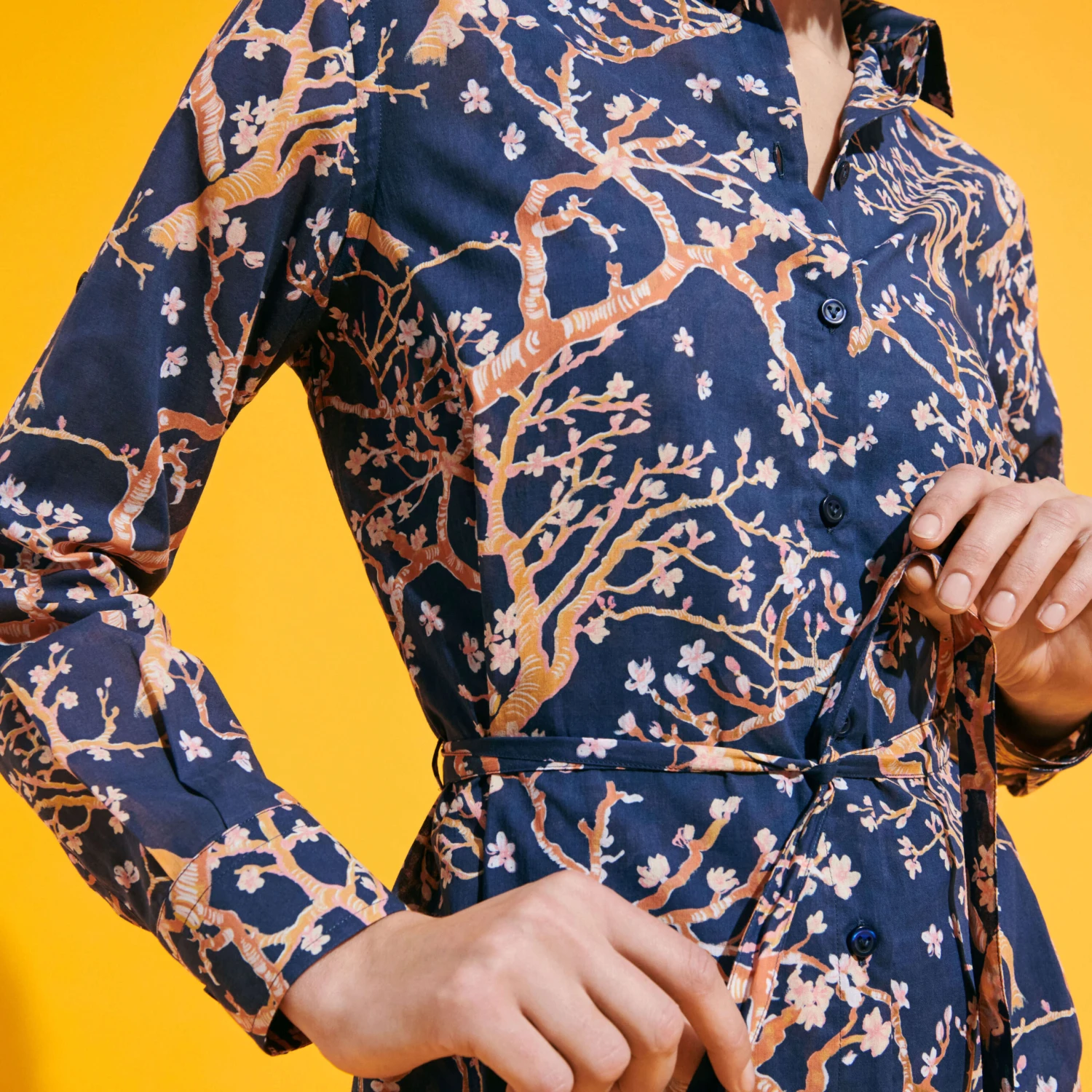 Celebrate spring’s reappearance with the cherry blossoms on the Sweet Blossom shirt dress, whose pink petals combine grace and character… much like you do.