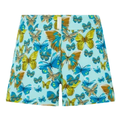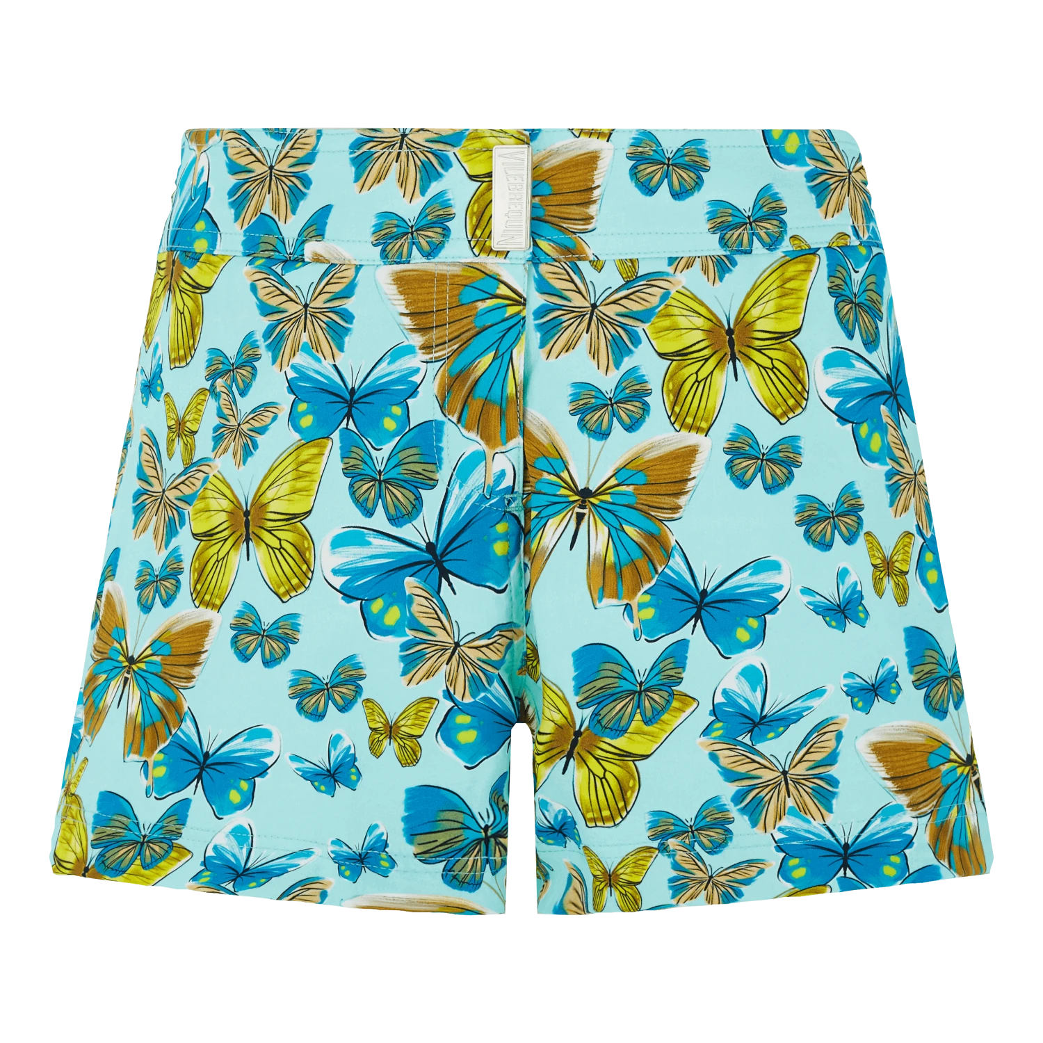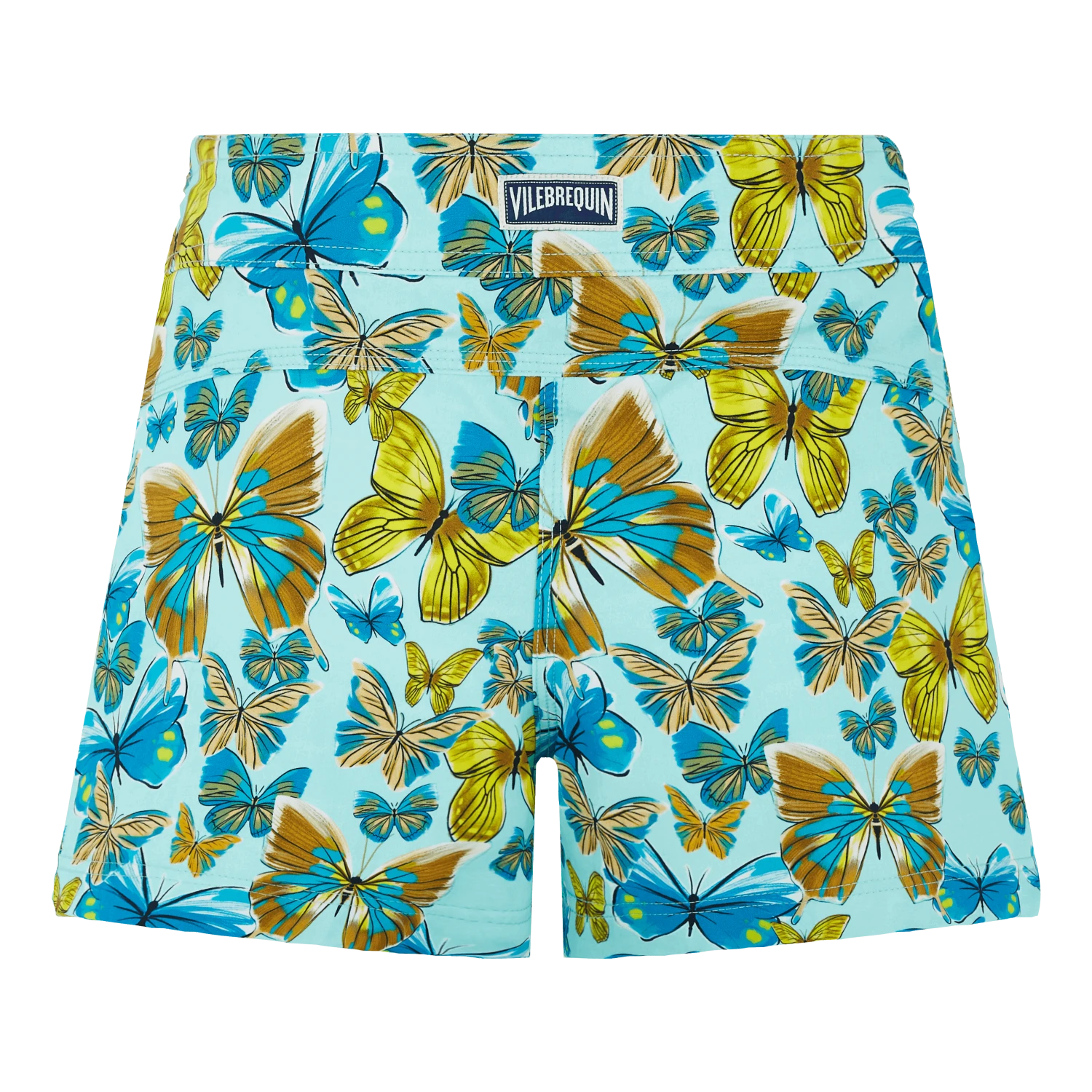 Butterflies are fluttering wildly on these Ferise Butterflies women’s swim hipsters with their flat waistband. Cut from a soft fabric made from recycled fibres, these eco-friendly and stylish shorts have two pockets. As with the men’s version, there’s a custom press stud fastening on the waistband.