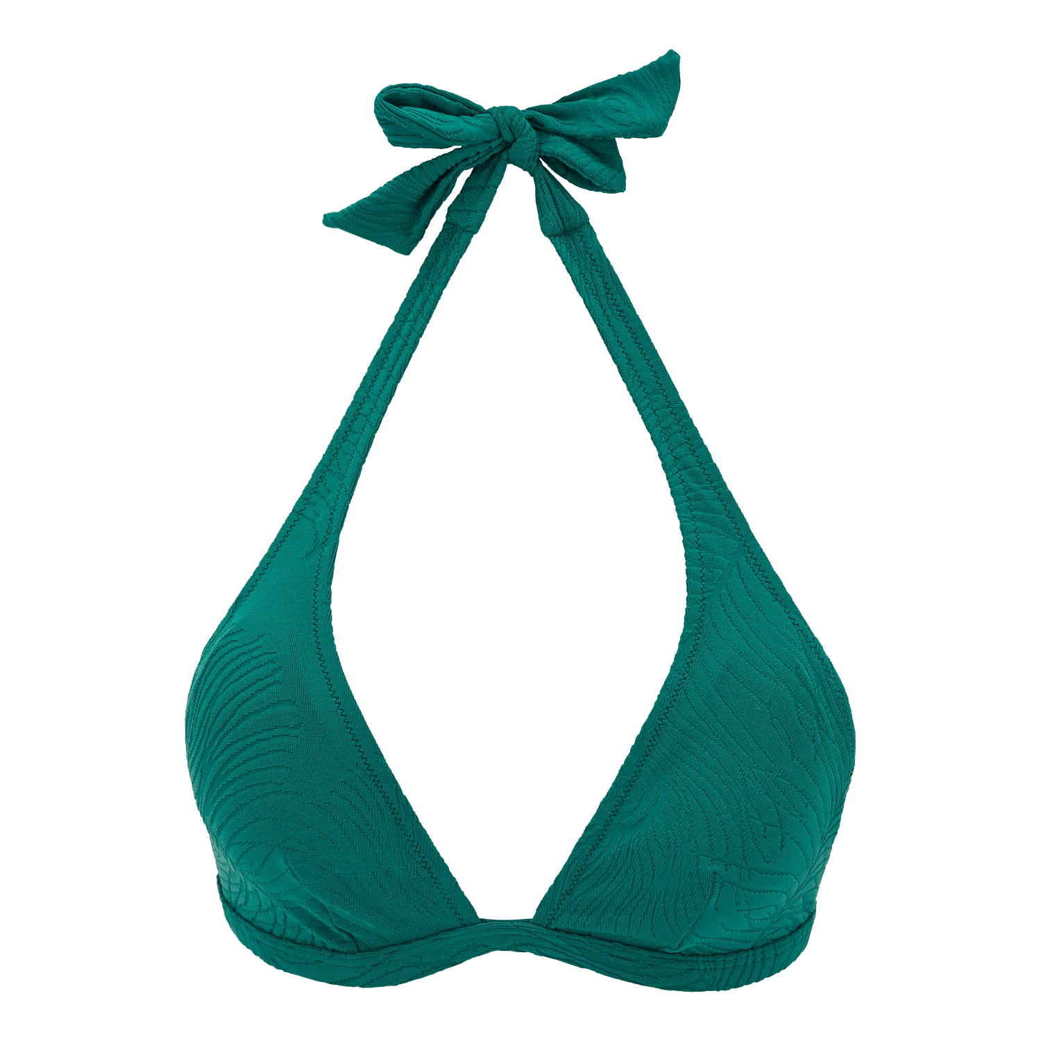 Go mellow this season with the understated relief texture of the Fleche women’s bikini top. Discreet and sophisticated, these jacquard patterns combine with the softness of peacock feathers.