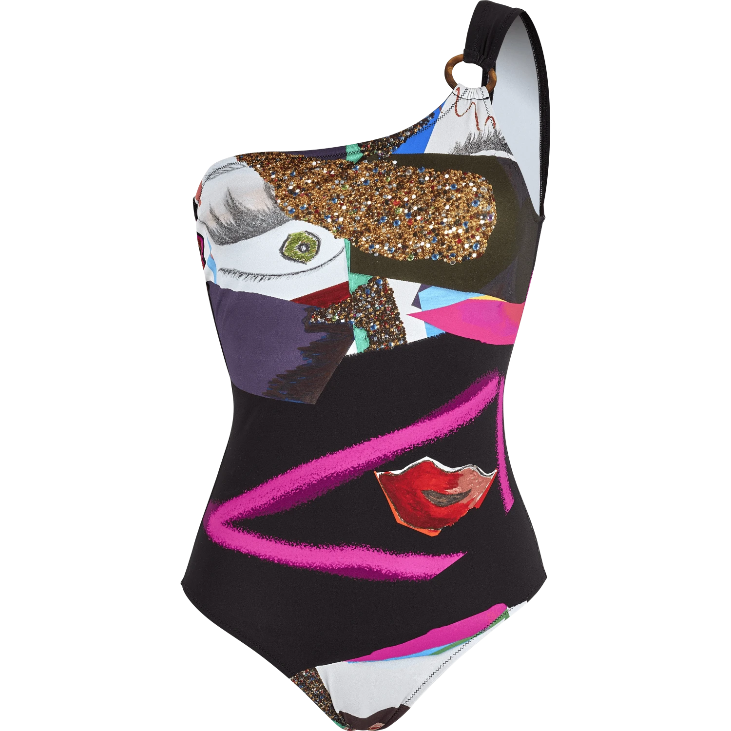 - One-piece one-shoulder swimming costume