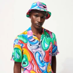 Men Bucket Hat Tortues Rainbow Multicolor – Vilebrequin X Kenny Scharf